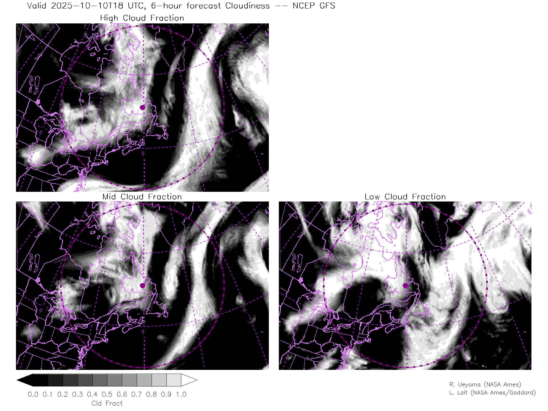 NCEP GFS Forecast Cloud Fraction (High, Mid, Low)