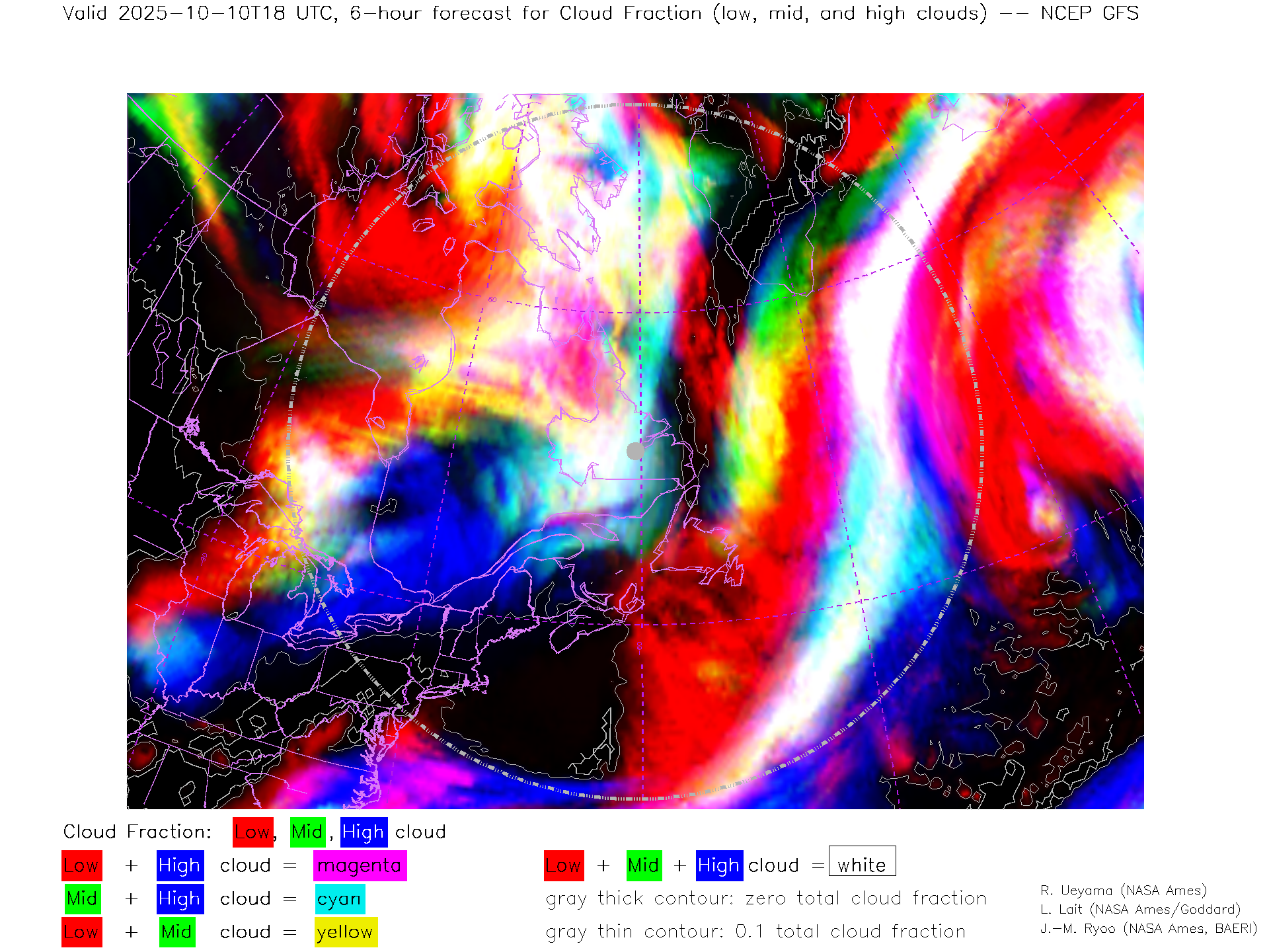 NCEP GFS Forecast Low-, Mid- and High-level Cloud Fraction