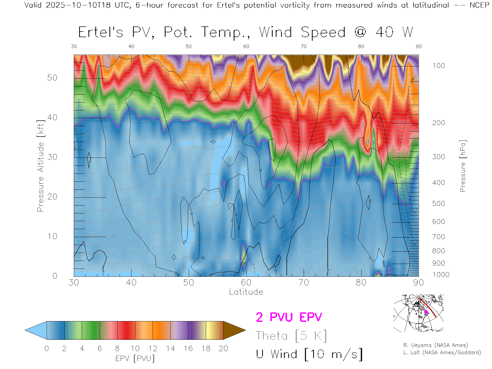 NCEP GFS Forecast PV X-Section (40 W)
