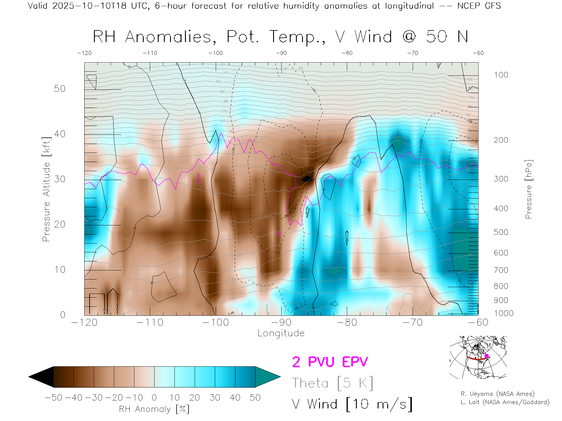 NCEP GFS Forecast Rel. Hum. X-Section (50 N)