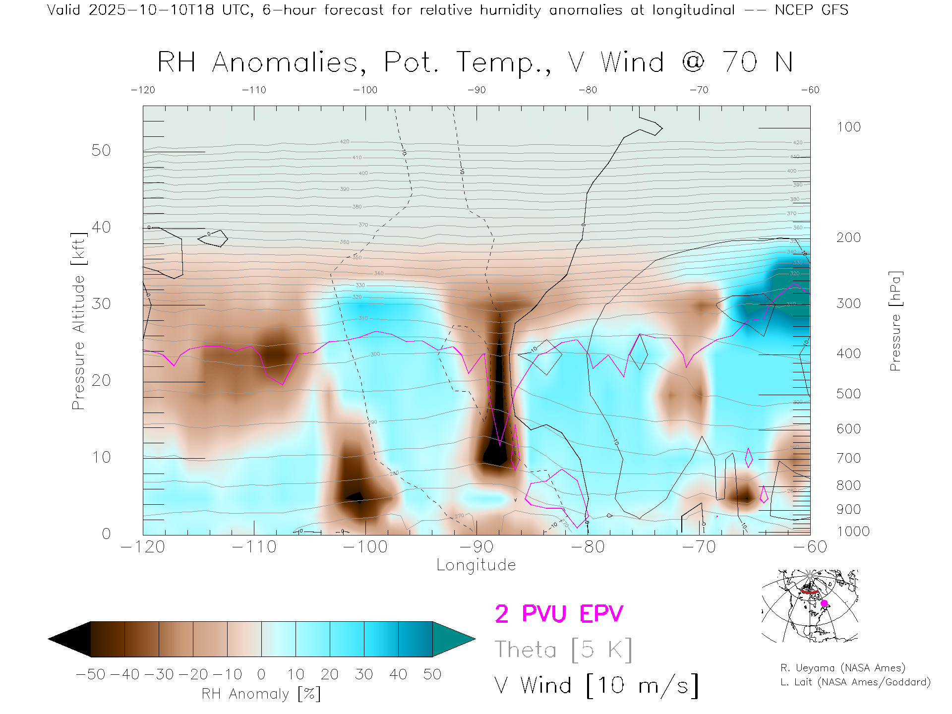 NCEP GFS Forecast Rel. Hum. X-Section (70 N)
