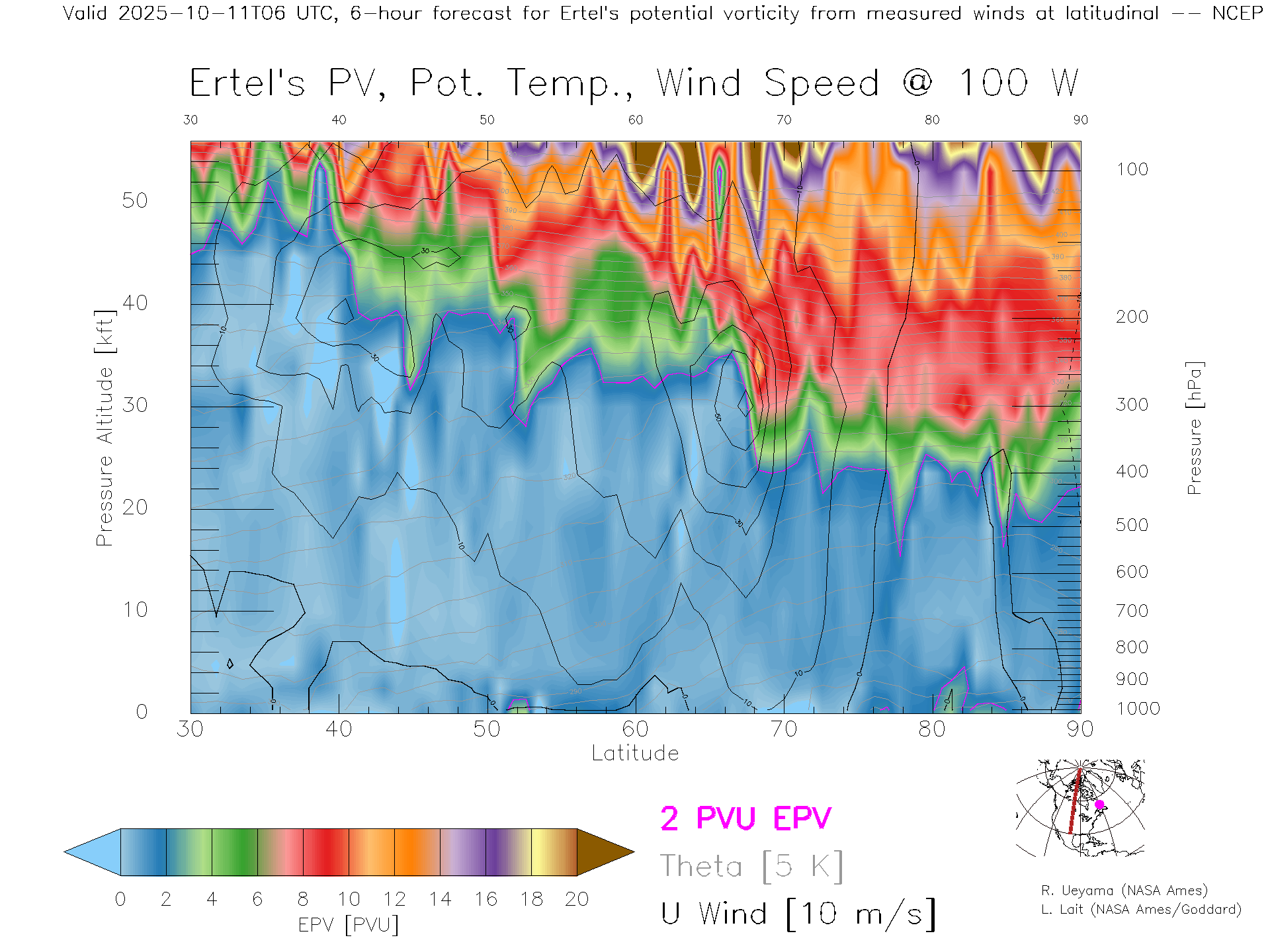 NCEP GFS Forecast PV X-Section (100 W)