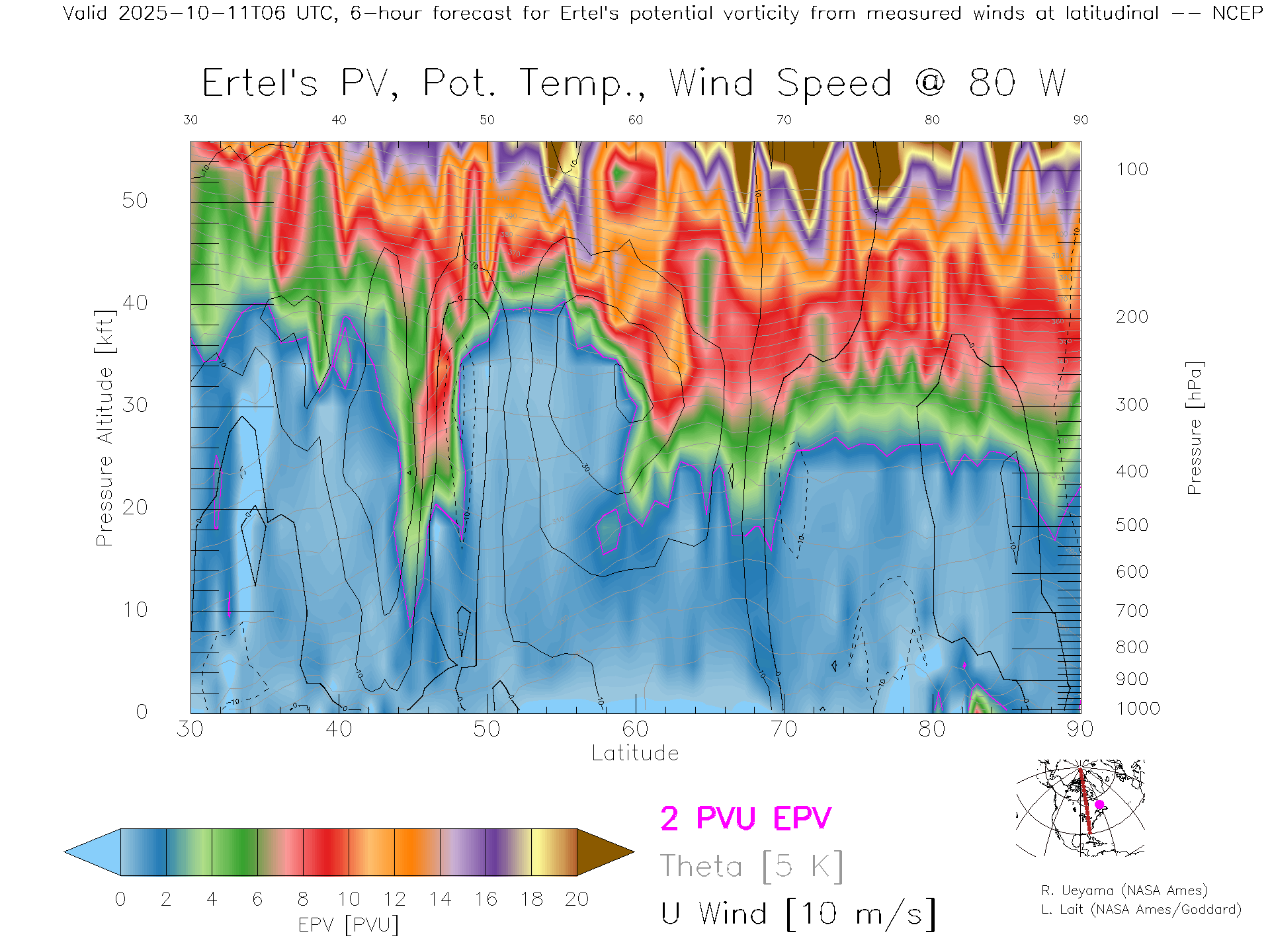 NCEP GFS Forecast PV X-Section (80 W)