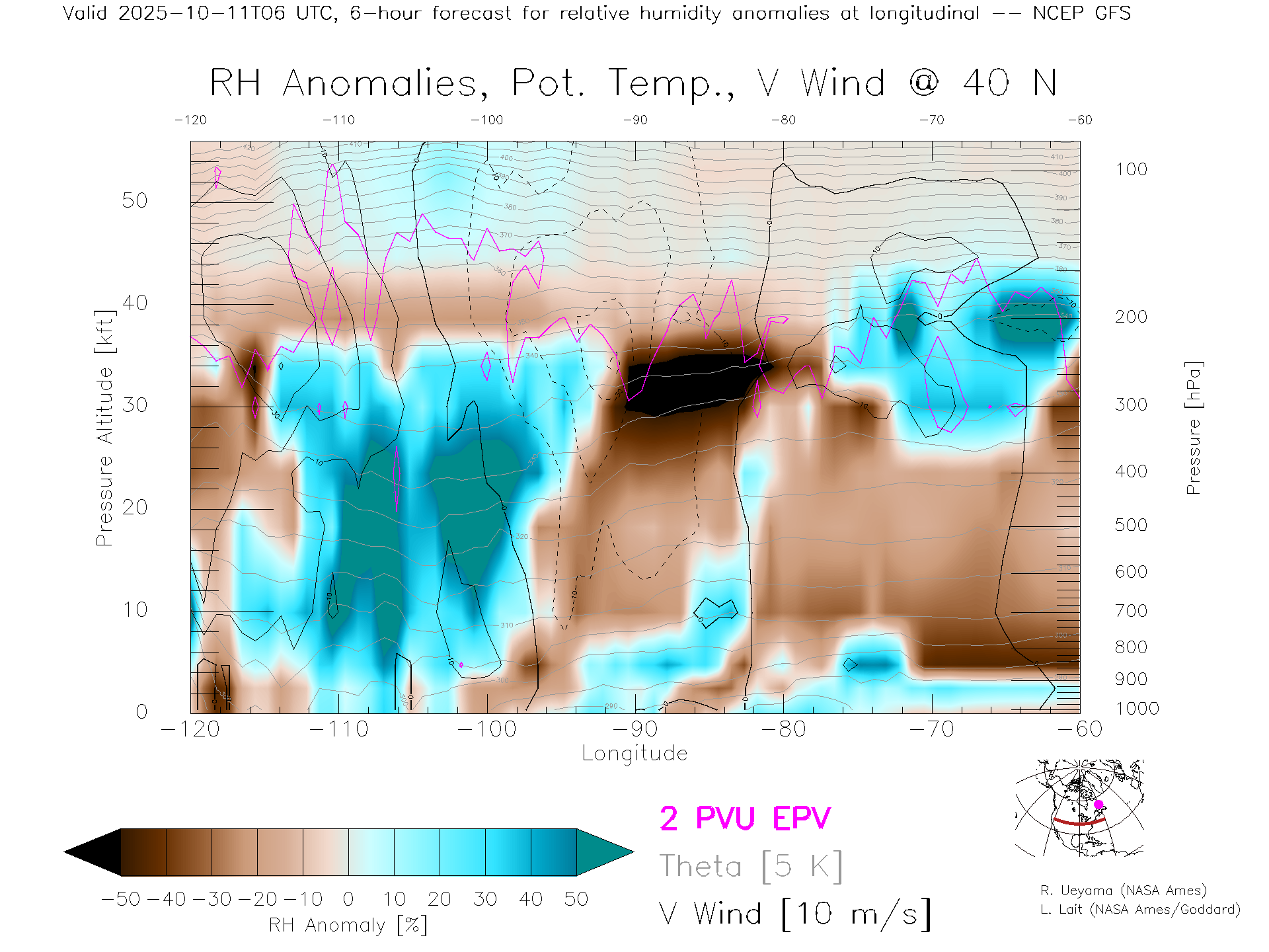 NCEP GFS Forecast Rel. Hum. X-Section (40 N)