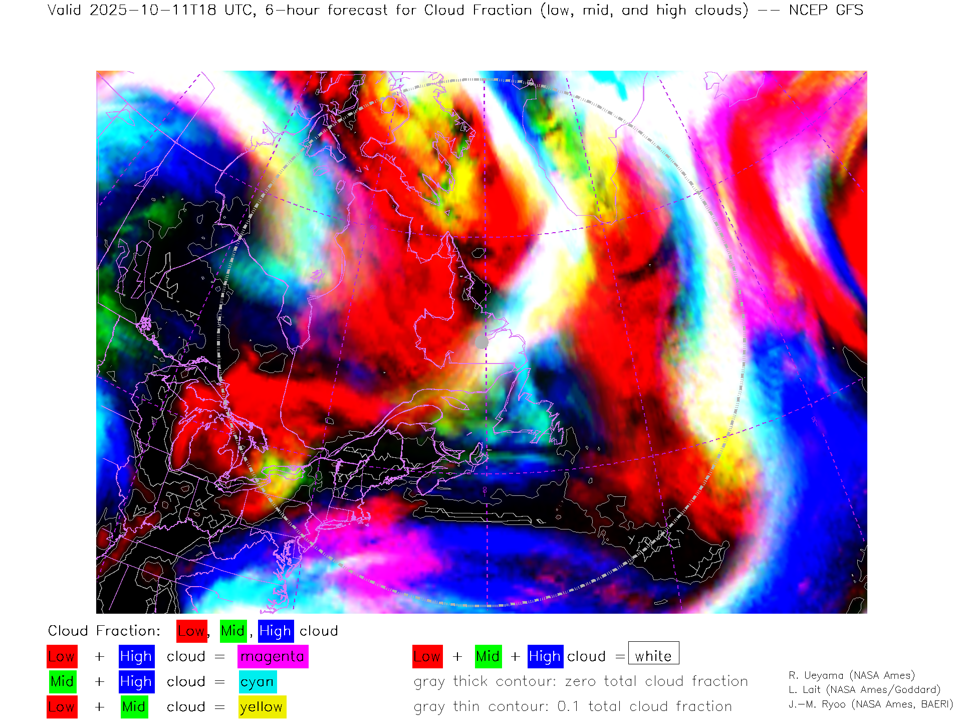 NCEP GFS Forecast Low-, Mid- and High-level Cloud Fraction