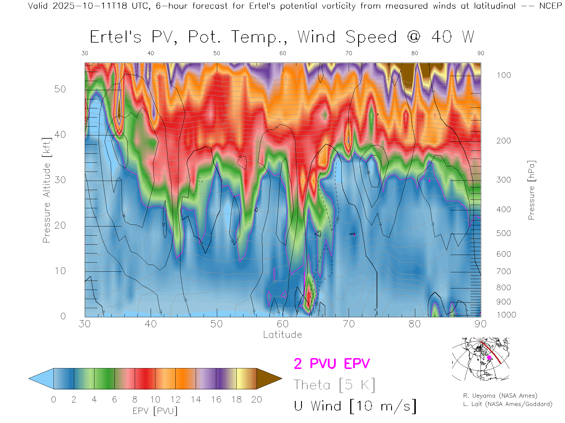 NCEP GFS Forecast PV X-Section (40 W)