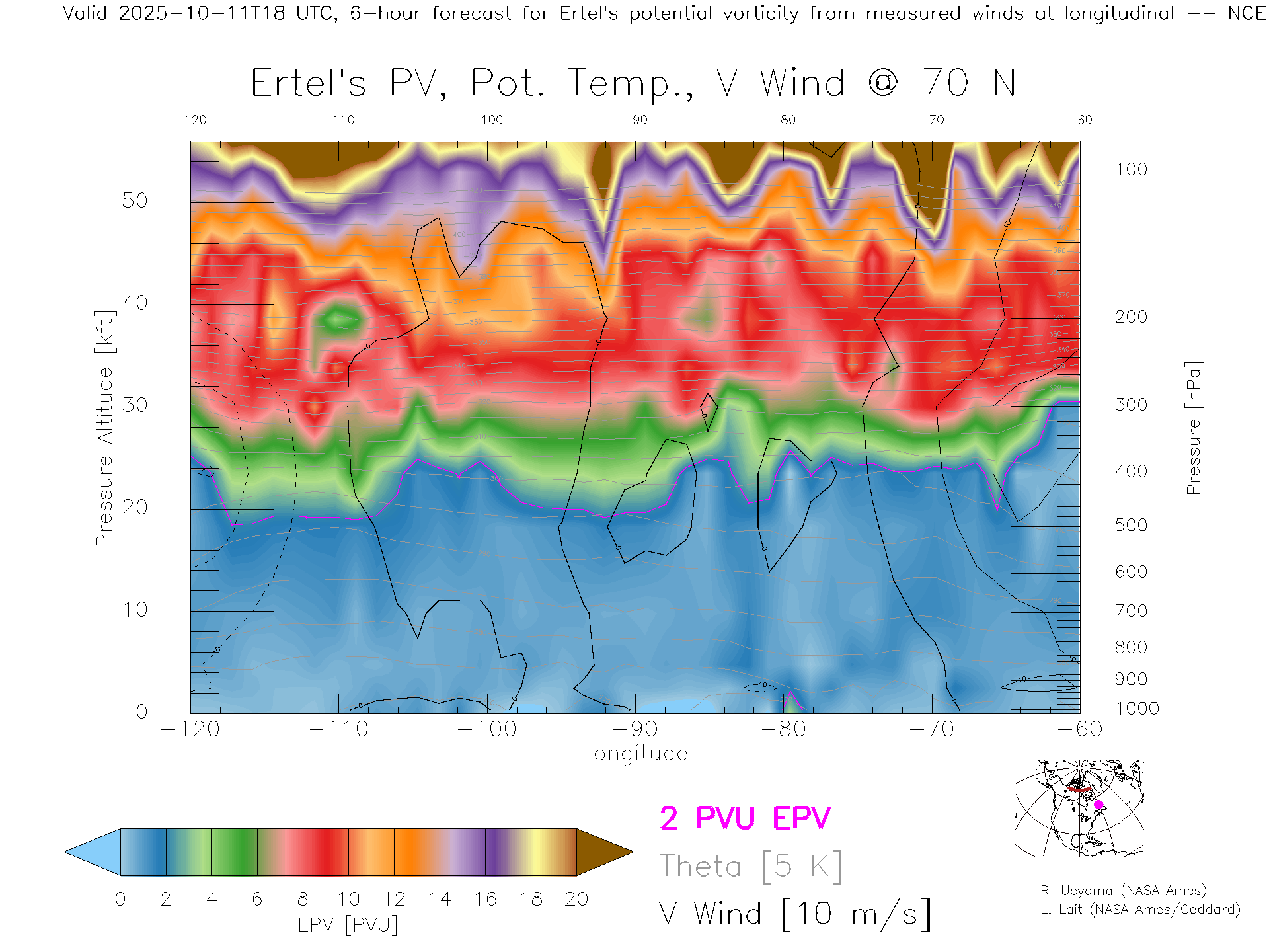 NCEP GFS Forecast PV X-Section (70 N)