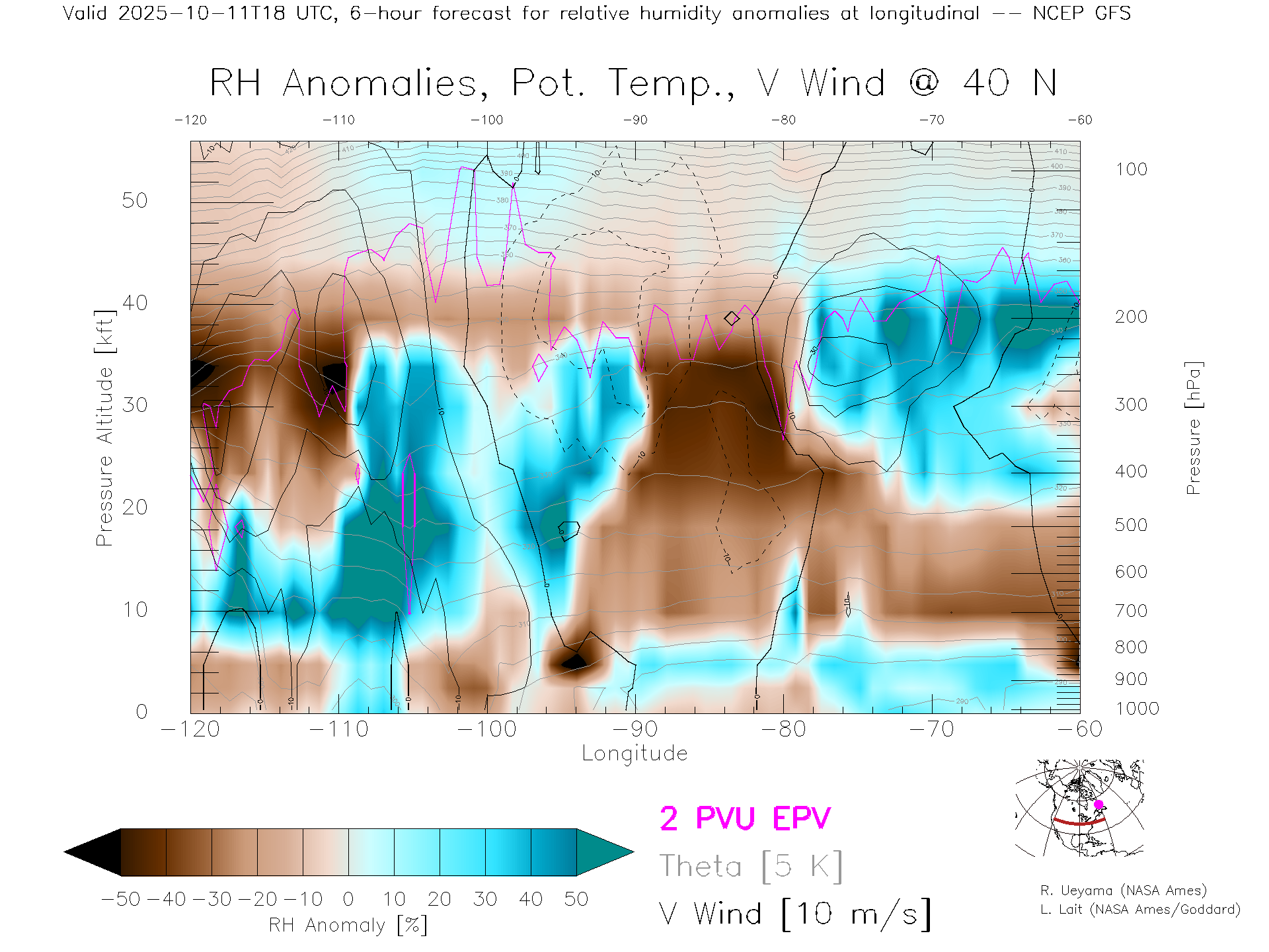 NCEP GFS Forecast Rel. Hum. X-Section (40 N)