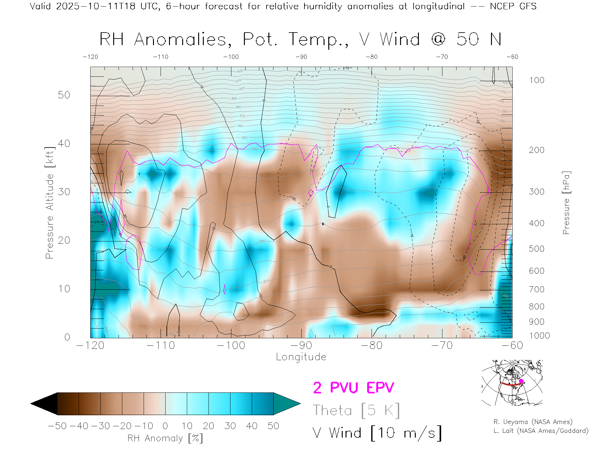 NCEP GFS Forecast Rel. Hum. X-Section (50 N)