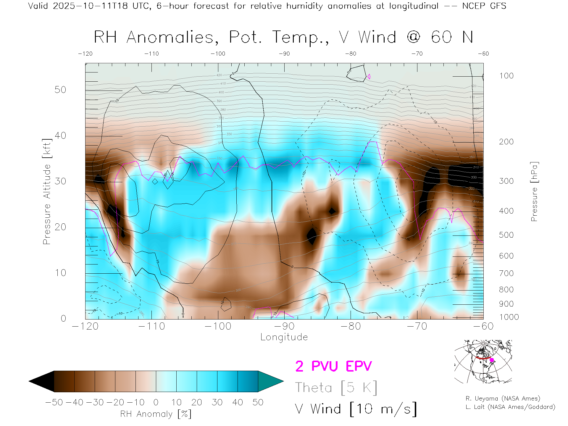 NCEP GFS Forecast Rel. Hum. X-Section (60 N)