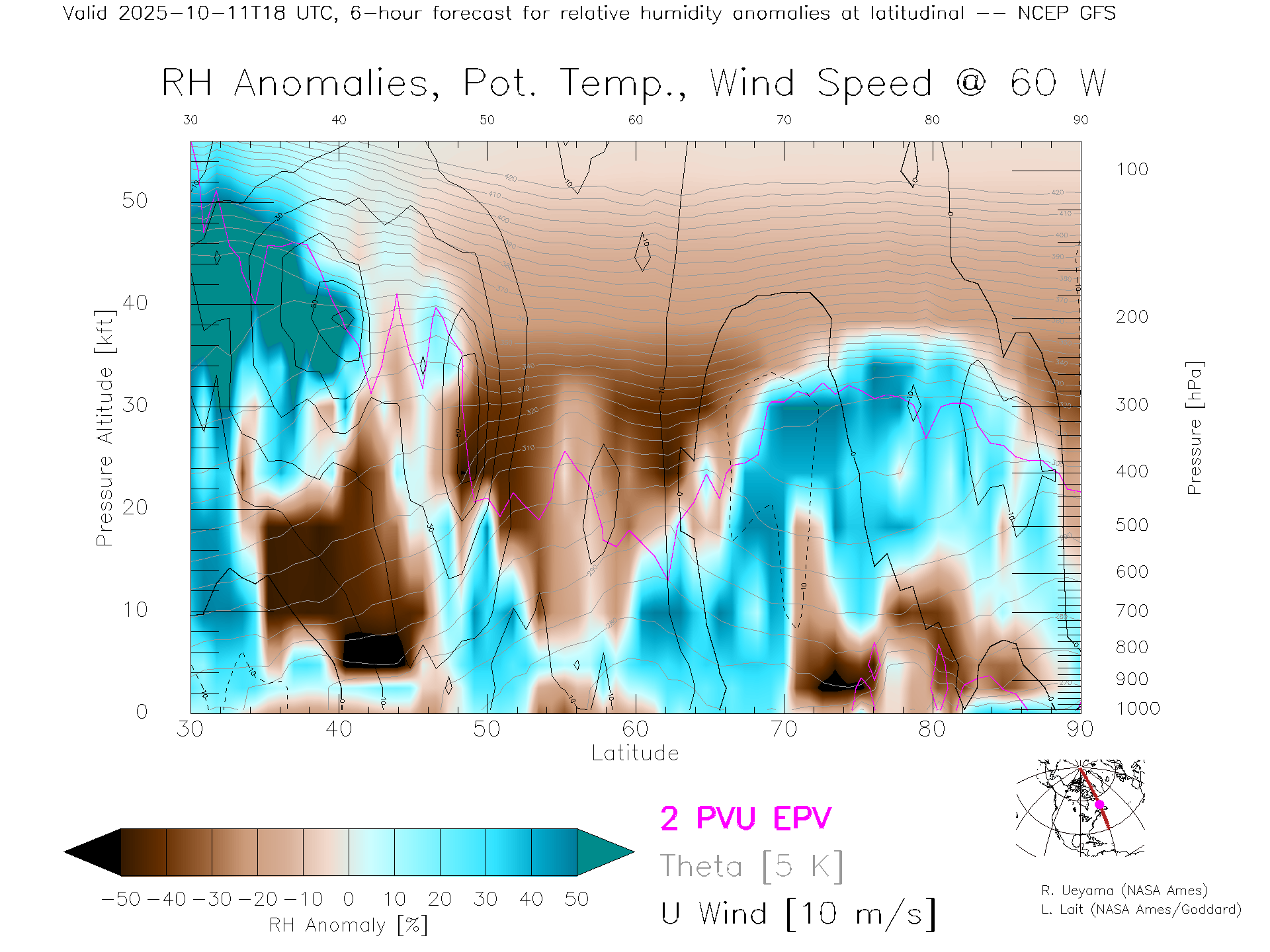 NCEP GFS Forecast Rel. Hum. X-Section (60 W)