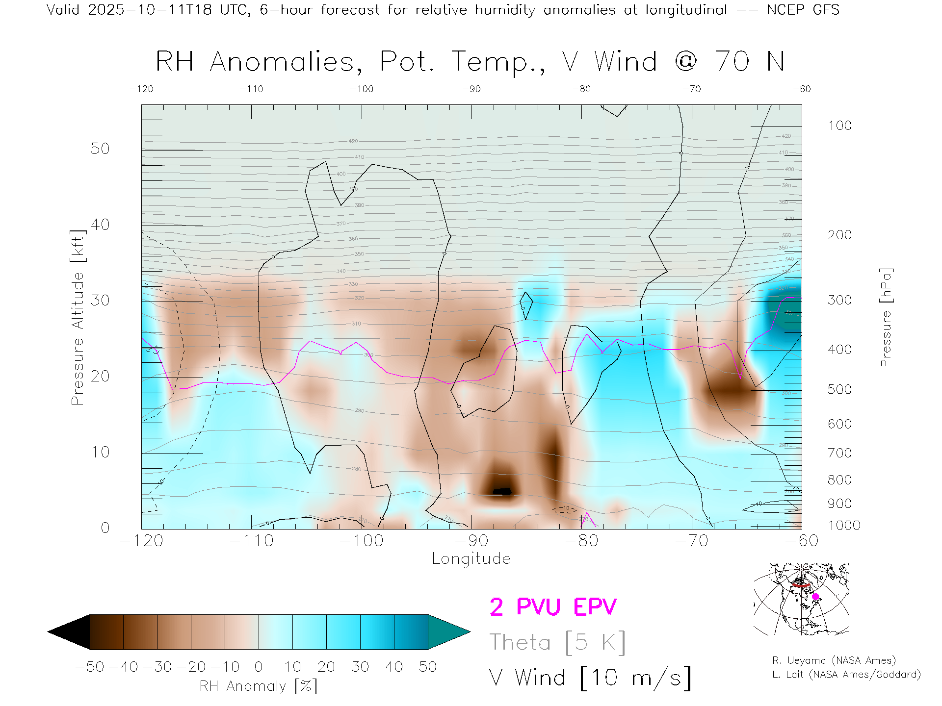 NCEP GFS Forecast Rel. Hum. X-Section (70 N)