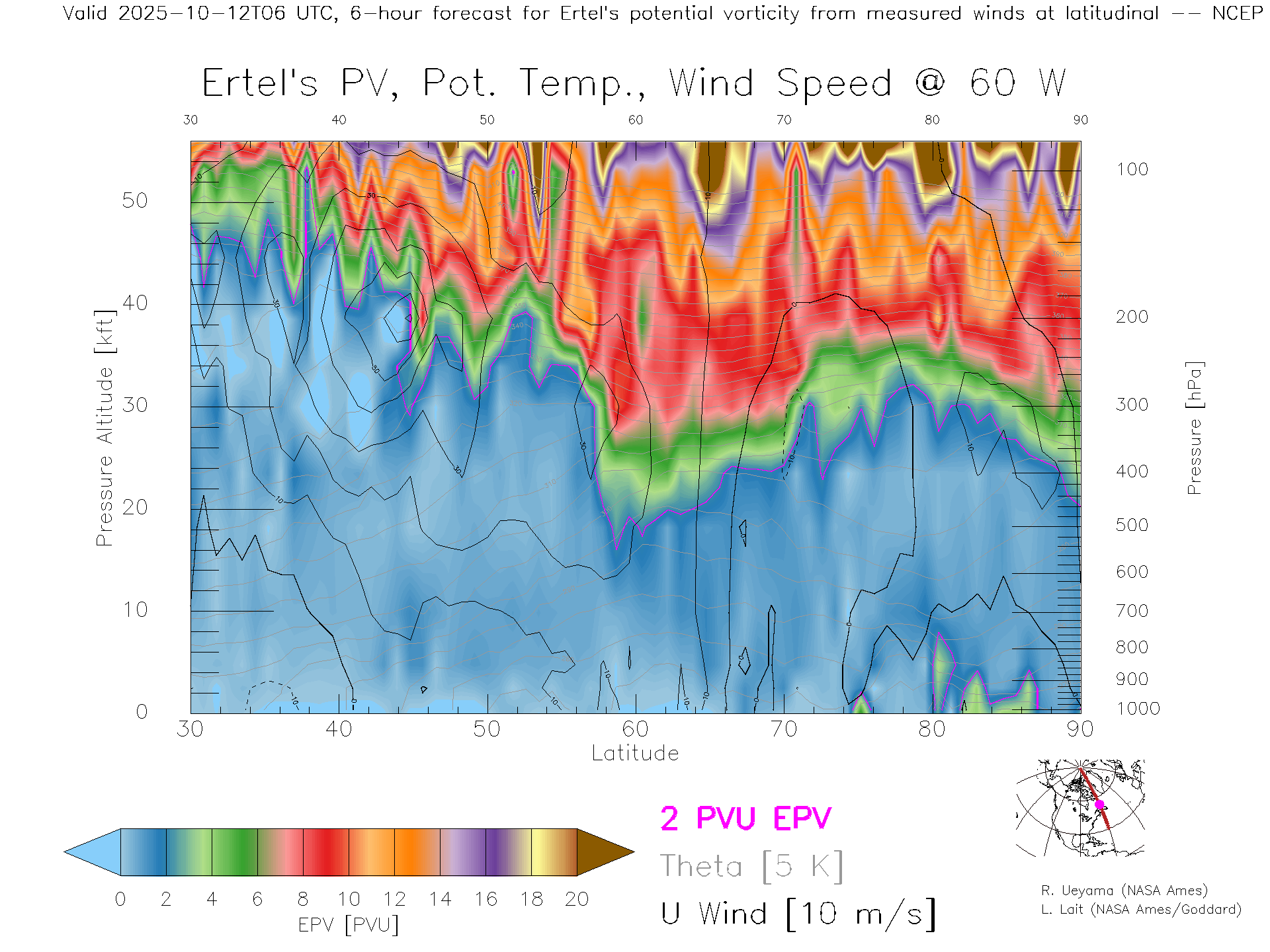 NCEP GFS Forecast PV X-Section (60 W)