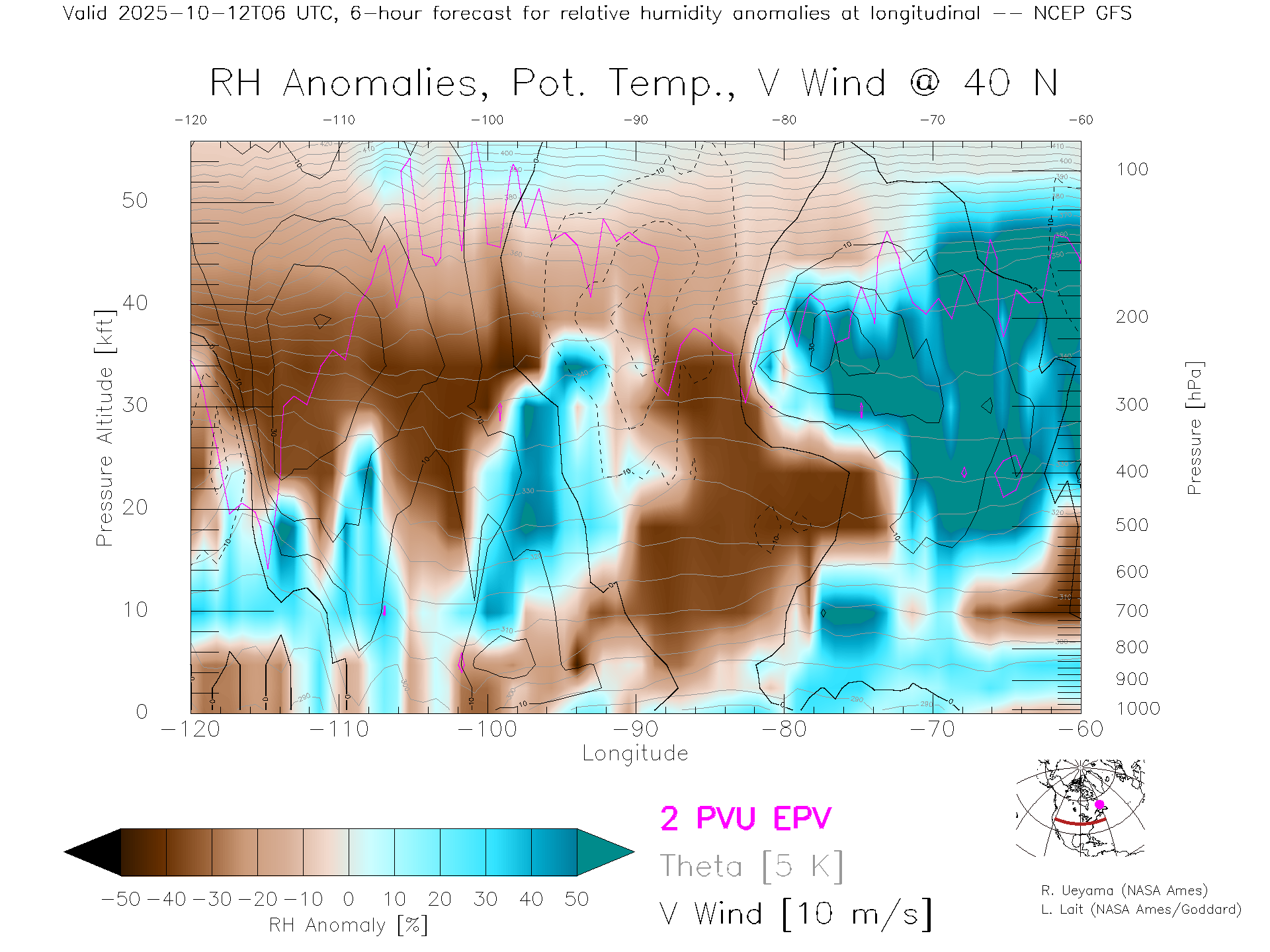 NCEP GFS Forecast Rel. Hum. X-Section (40 N)