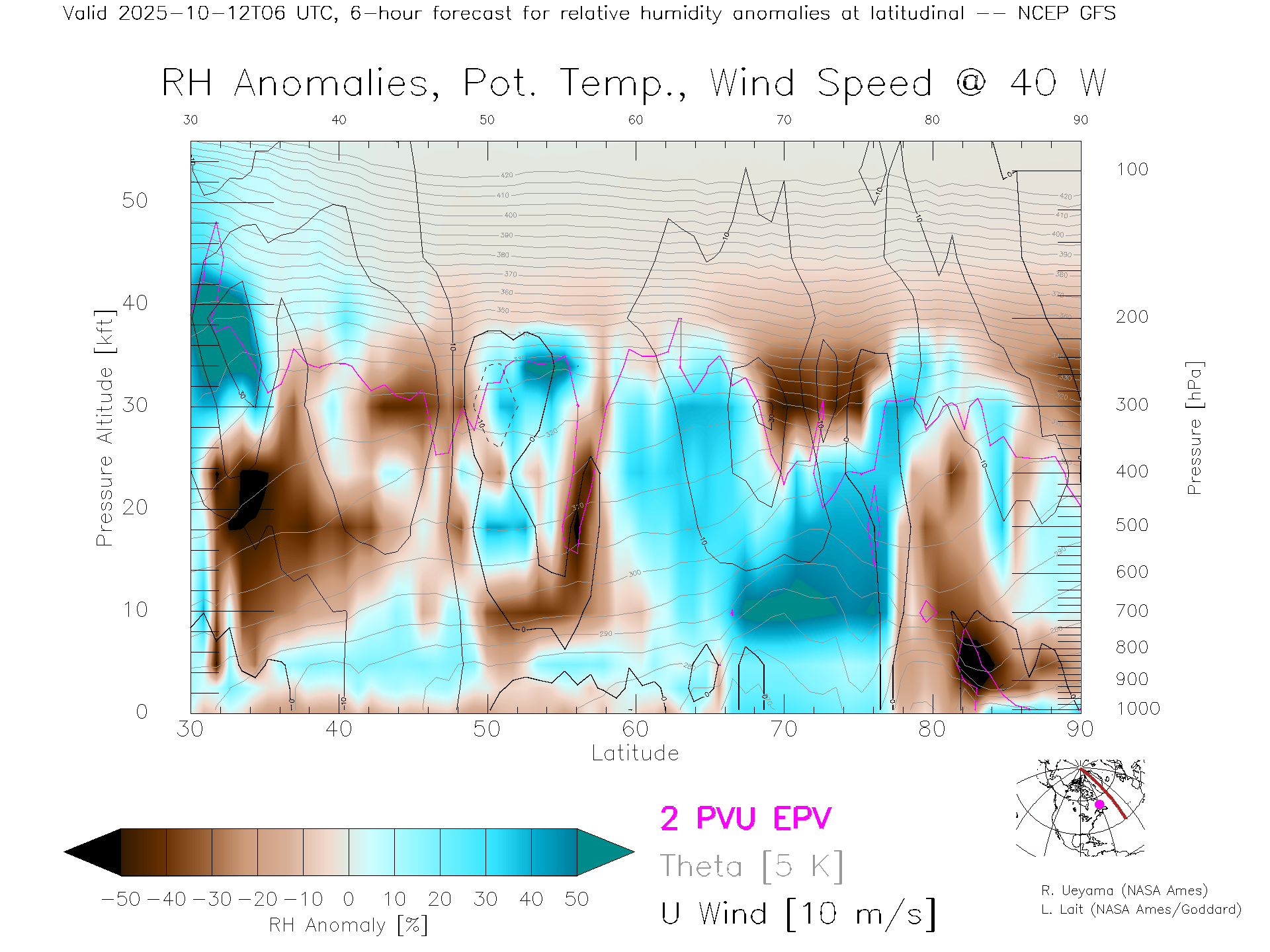 NCEP GFS Forecast Rel. Hum. X-Section (40 W)