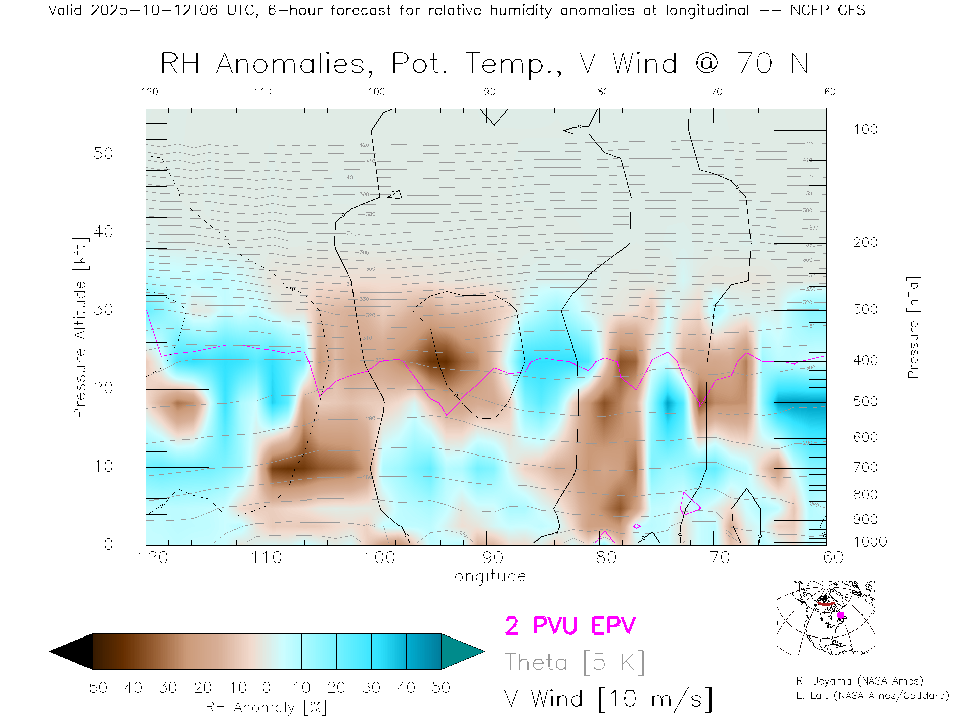 NCEP GFS Forecast Rel. Hum. X-Section (70 N)