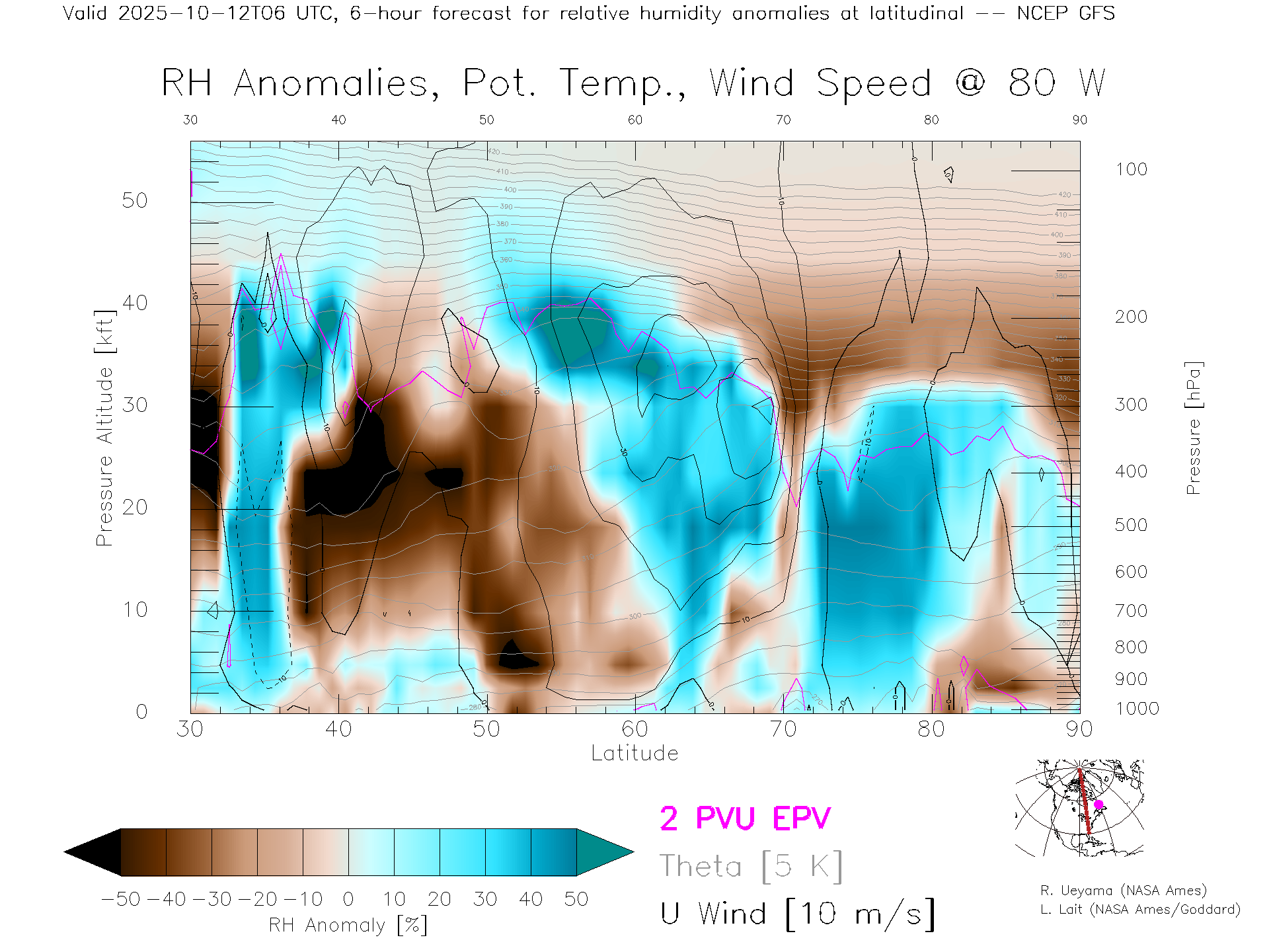 NCEP GFS Forecast Rel. Hum. X-Section (80 W)