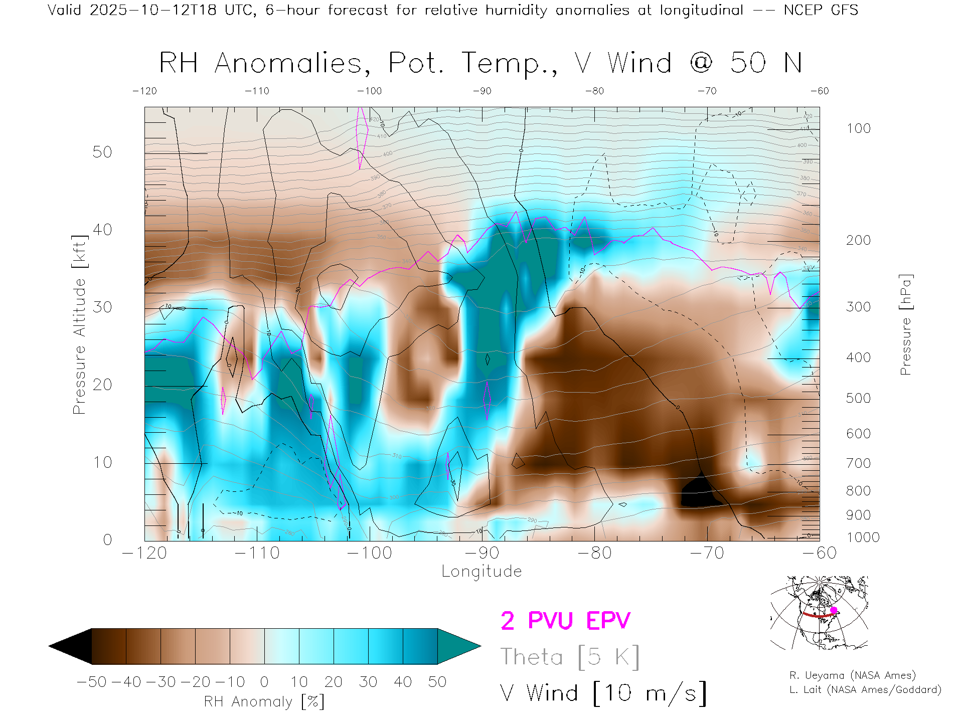 NCEP GFS Forecast Rel. Hum. X-Section (50 N)