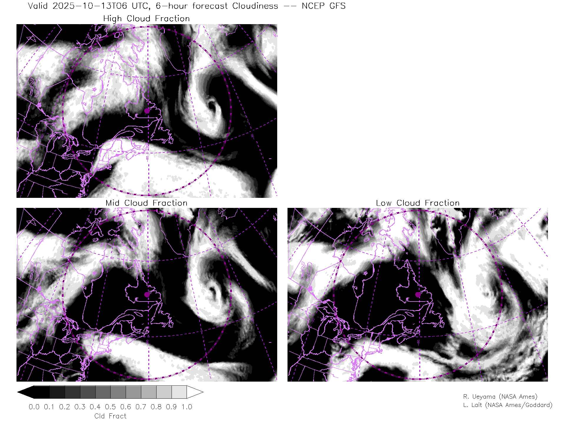 NCEP GFS Forecast Cloud Fraction (High, Mid, Low)