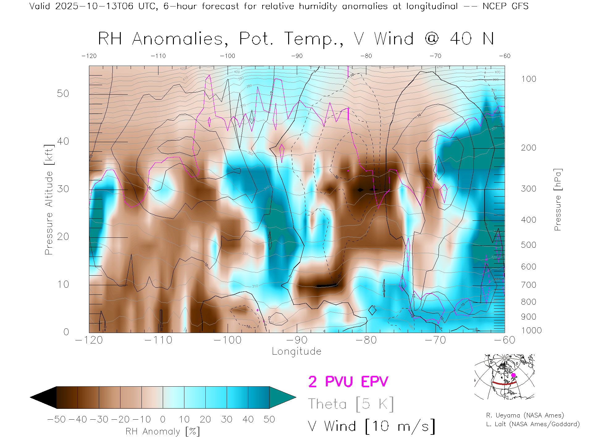 NCEP GFS Forecast Rel. Hum. X-Section (40 N)