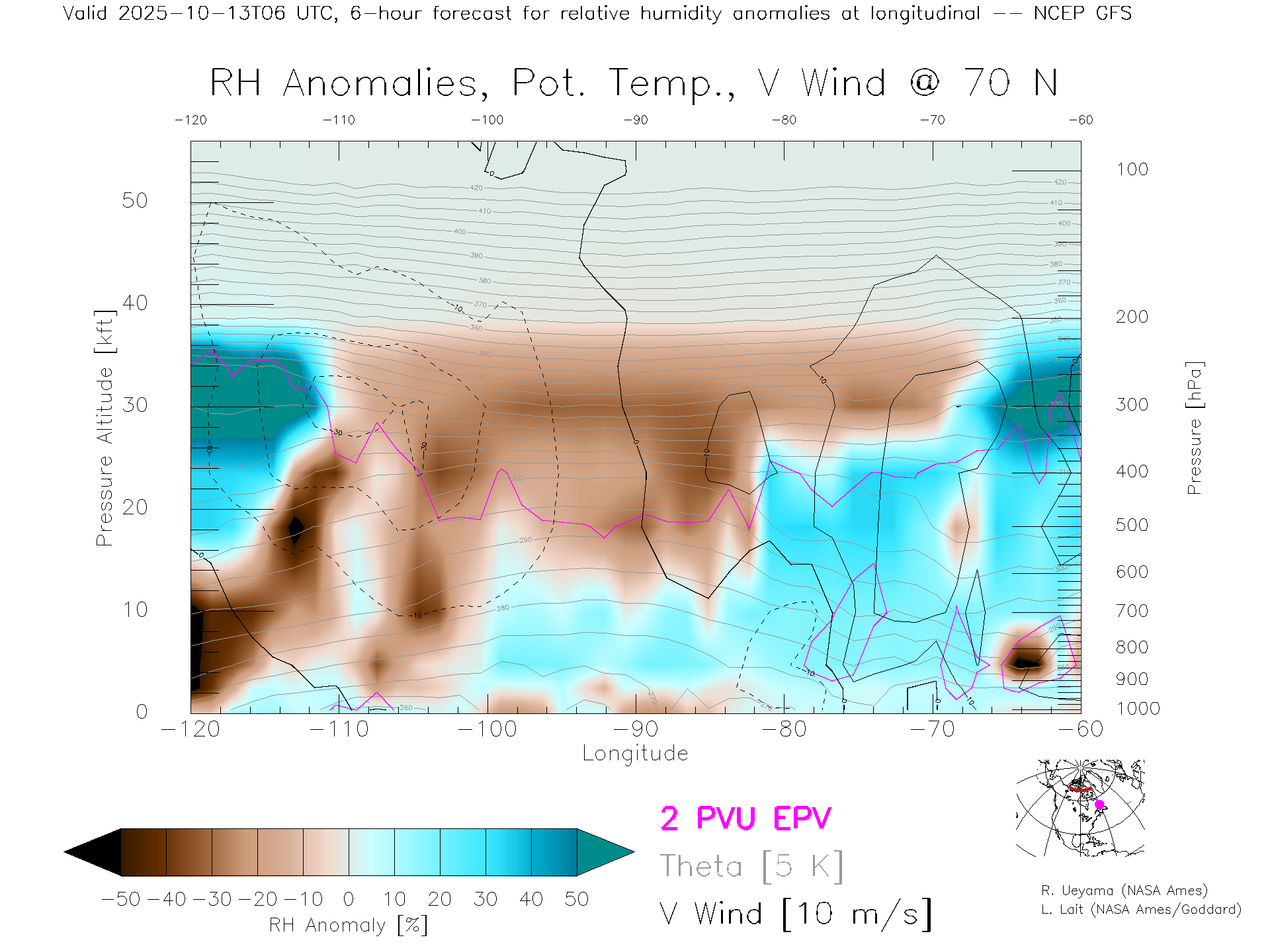 NCEP GFS Forecast Rel. Hum. X-Section (70 N)