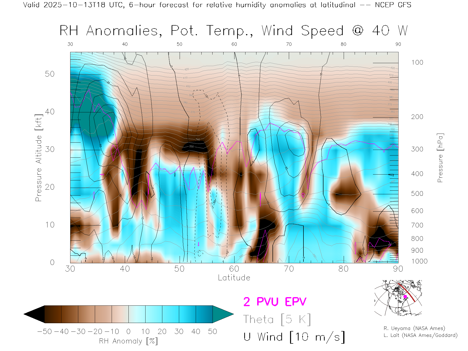 NCEP GFS Forecast Rel. Hum. X-Section (40 W)