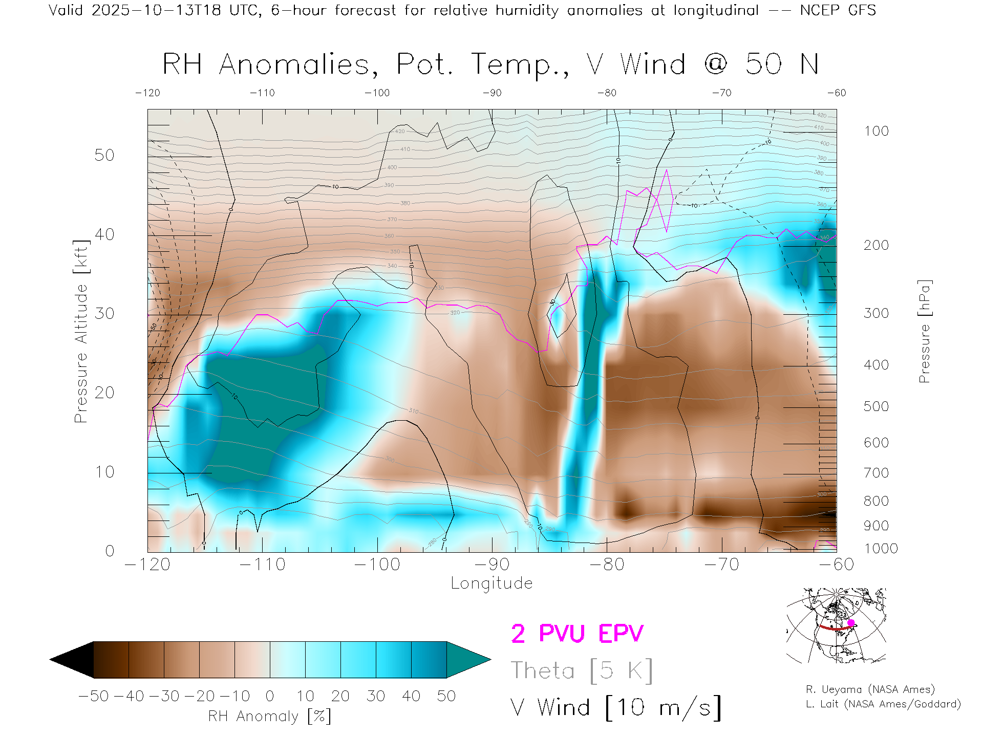 NCEP GFS Forecast Rel. Hum. X-Section (50 N)