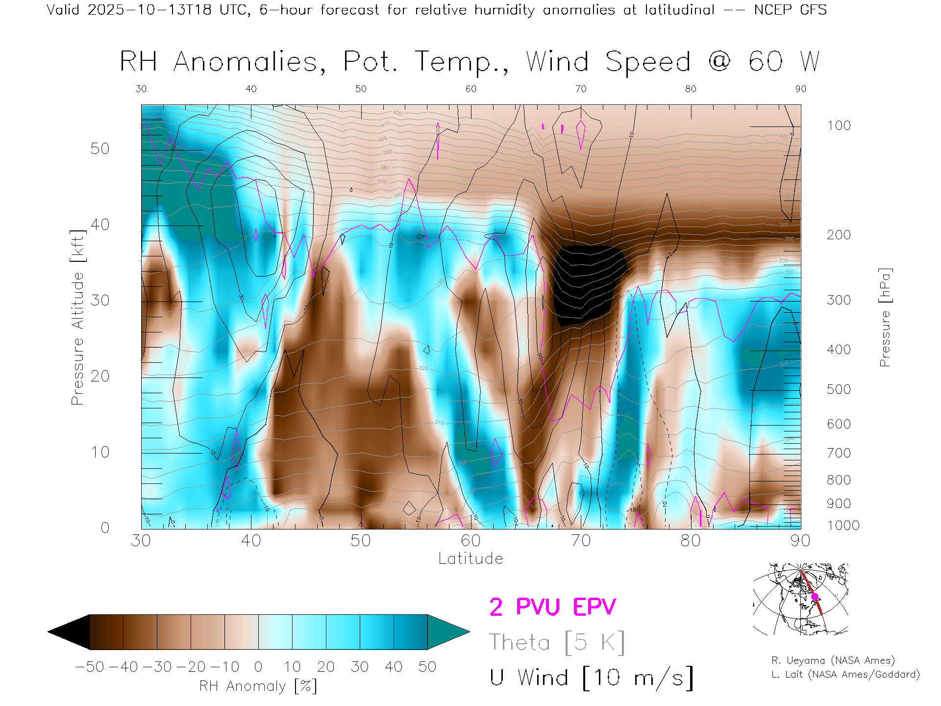NCEP GFS Forecast Rel. Hum. X-Section (60 W)