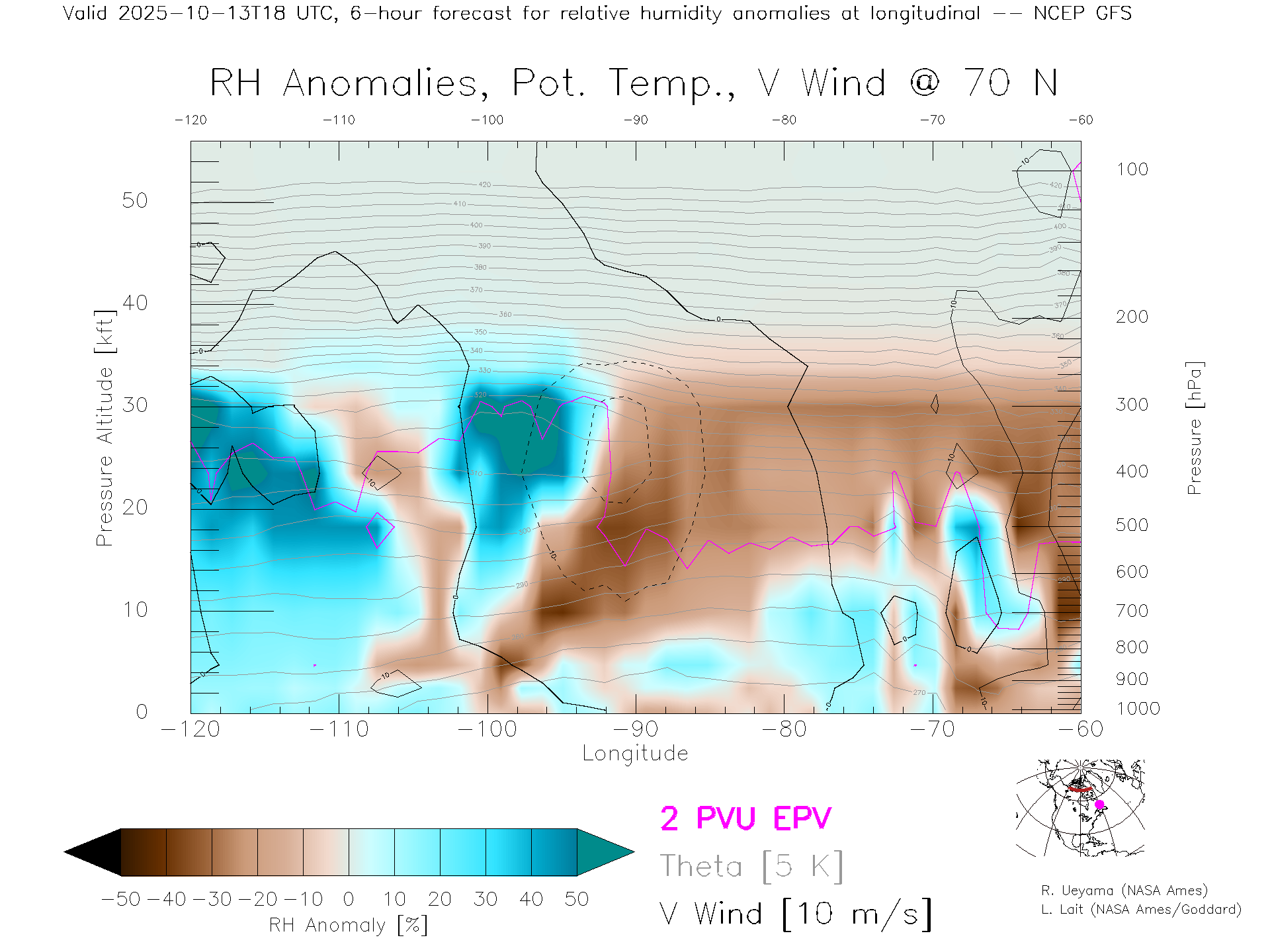 NCEP GFS Forecast Rel. Hum. X-Section (70 N)
