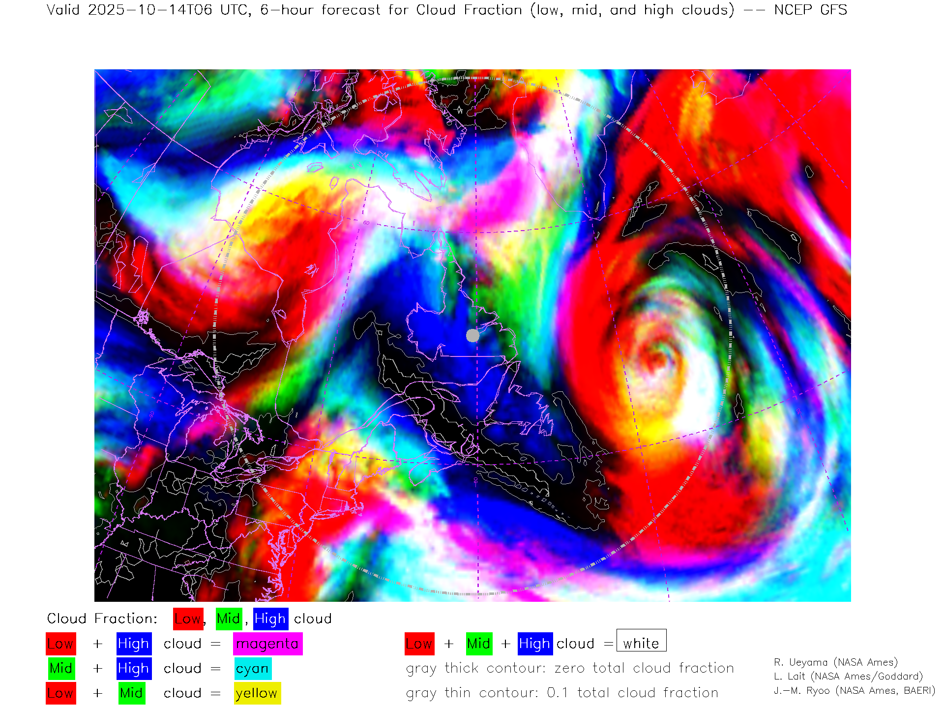 NCEP GFS Forecast Low-, Mid- and High-level Cloud Fraction