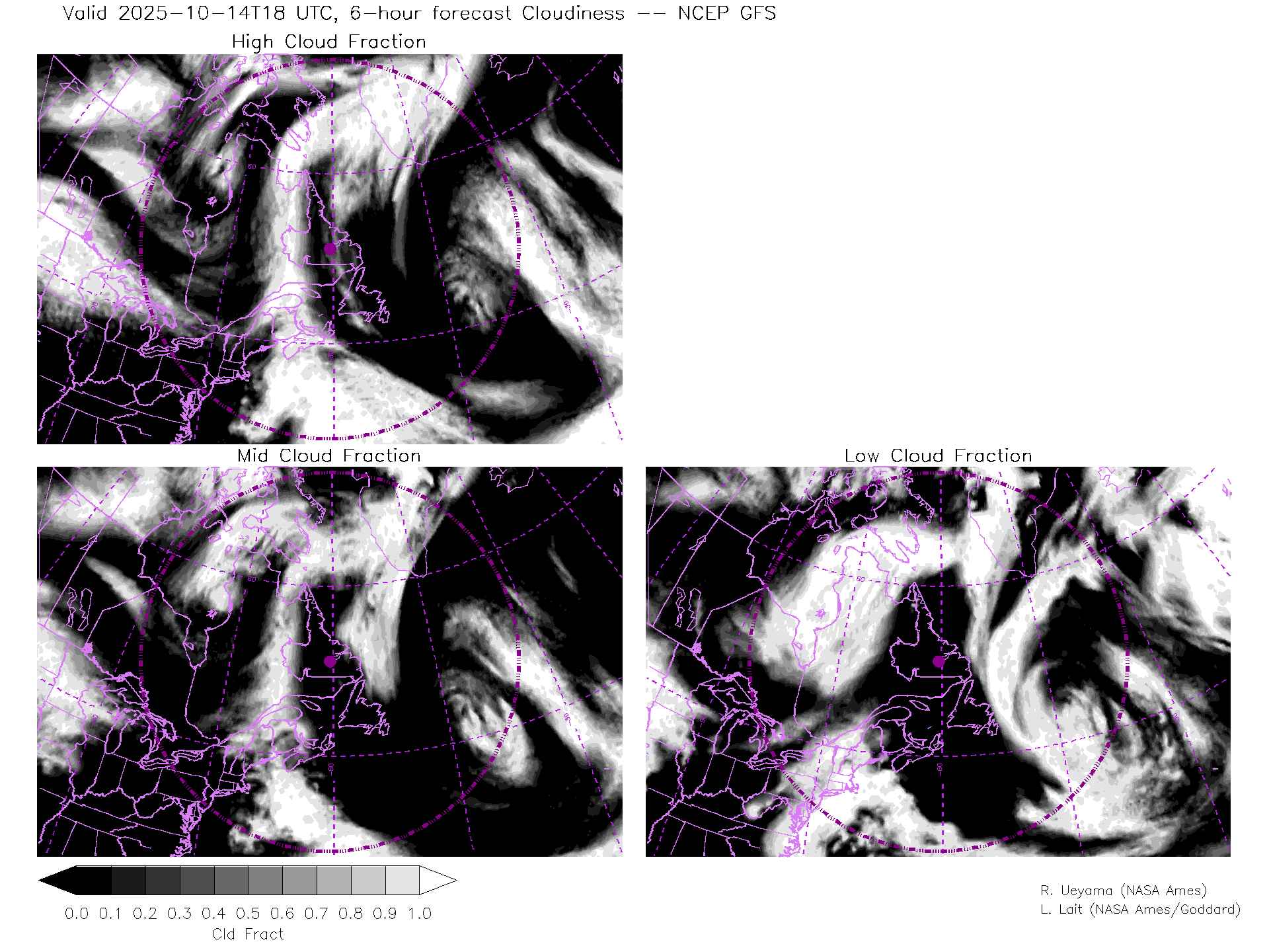 NCEP GFS Forecast Cloud Fraction (High, Mid, Low)