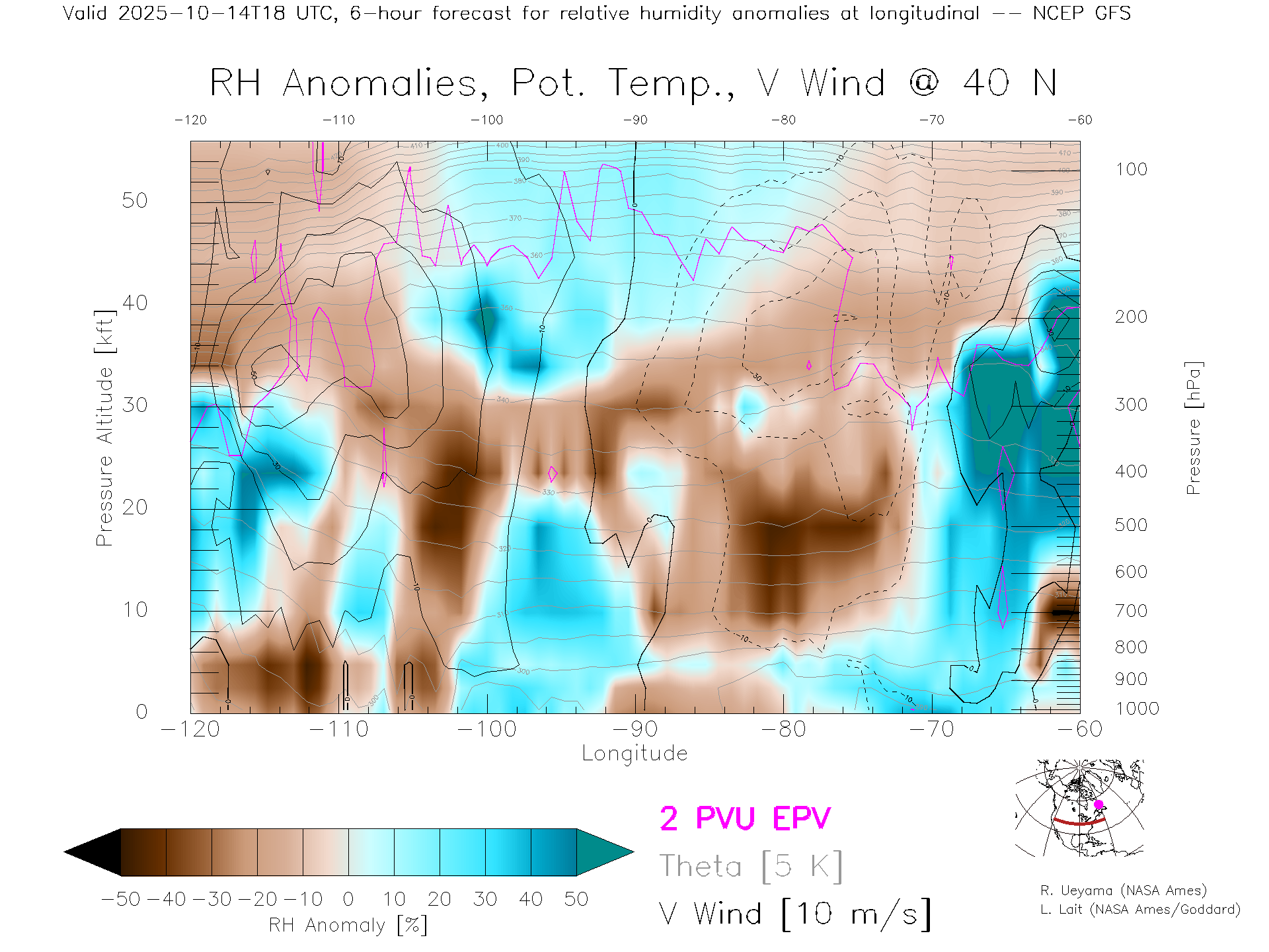 NCEP GFS Forecast Rel. Hum. X-Section (40 N)