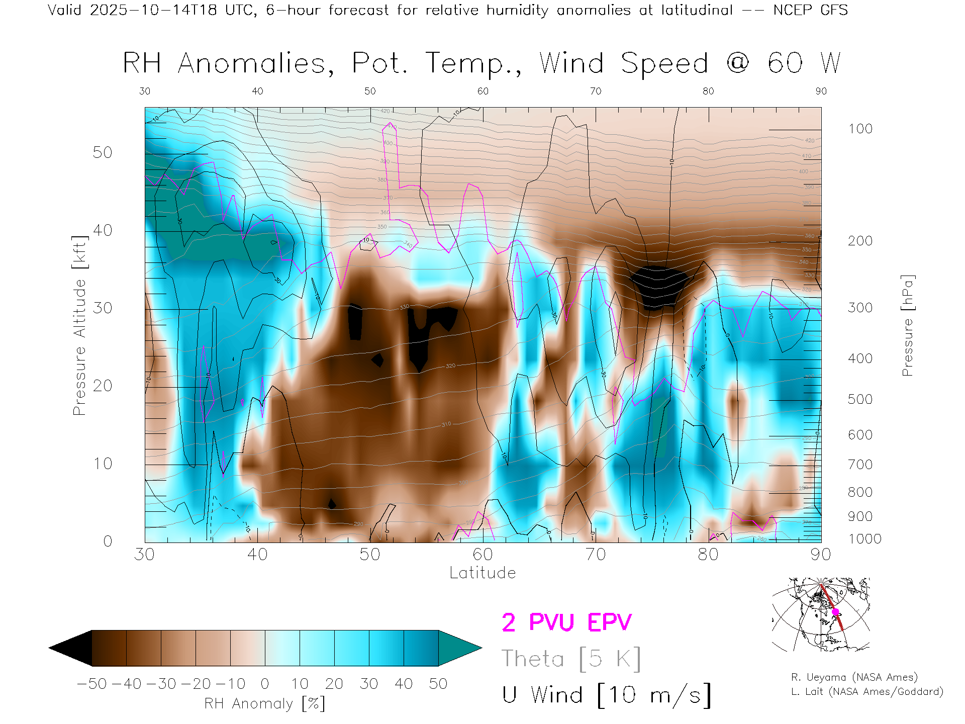 NCEP GFS Forecast Rel. Hum. X-Section (60 W)