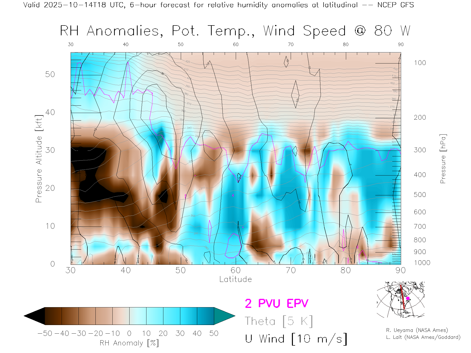 NCEP GFS Forecast Rel. Hum. X-Section (80 W)