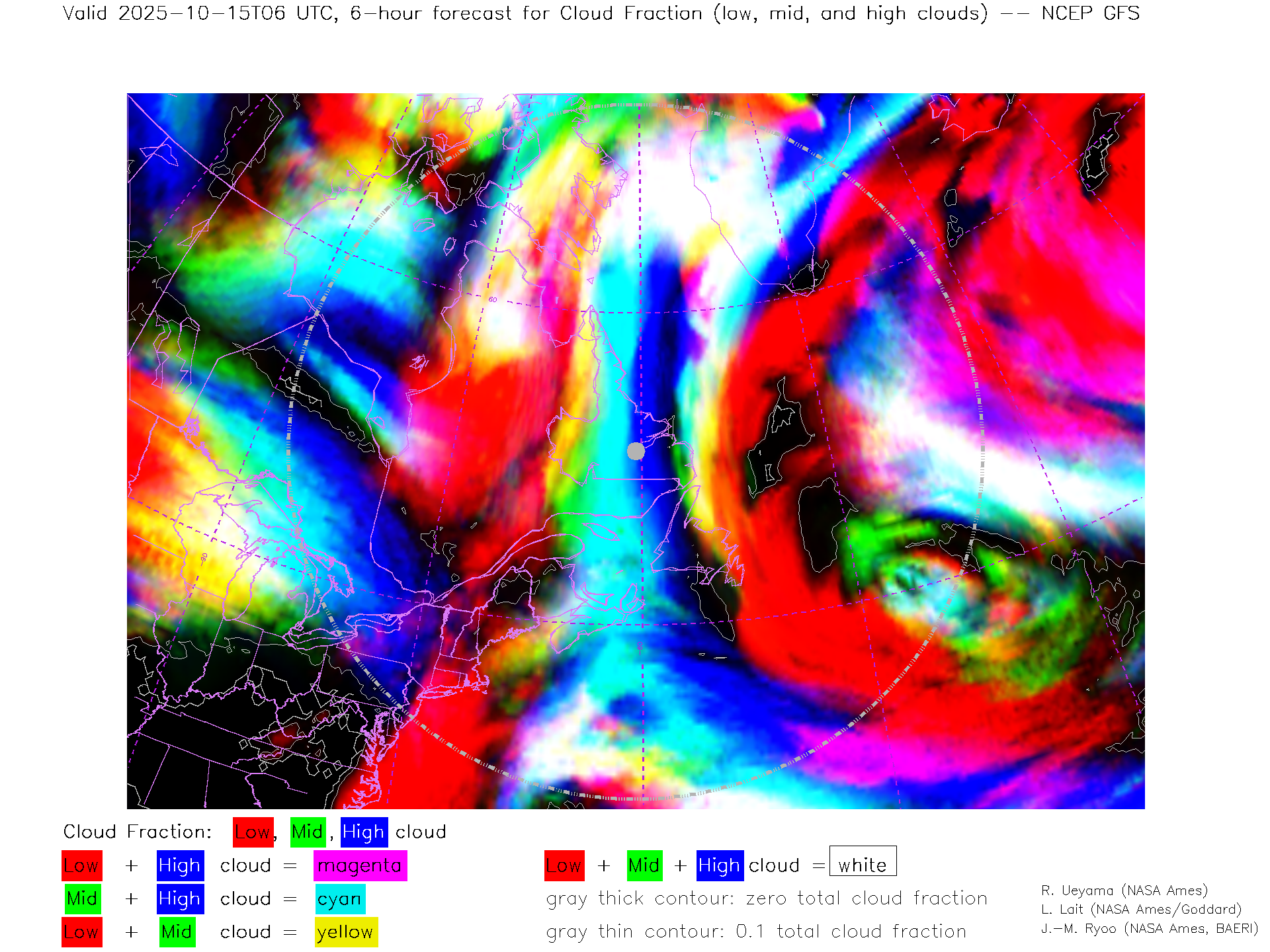 NCEP GFS Forecast Low-, Mid- and High-level Cloud Fraction