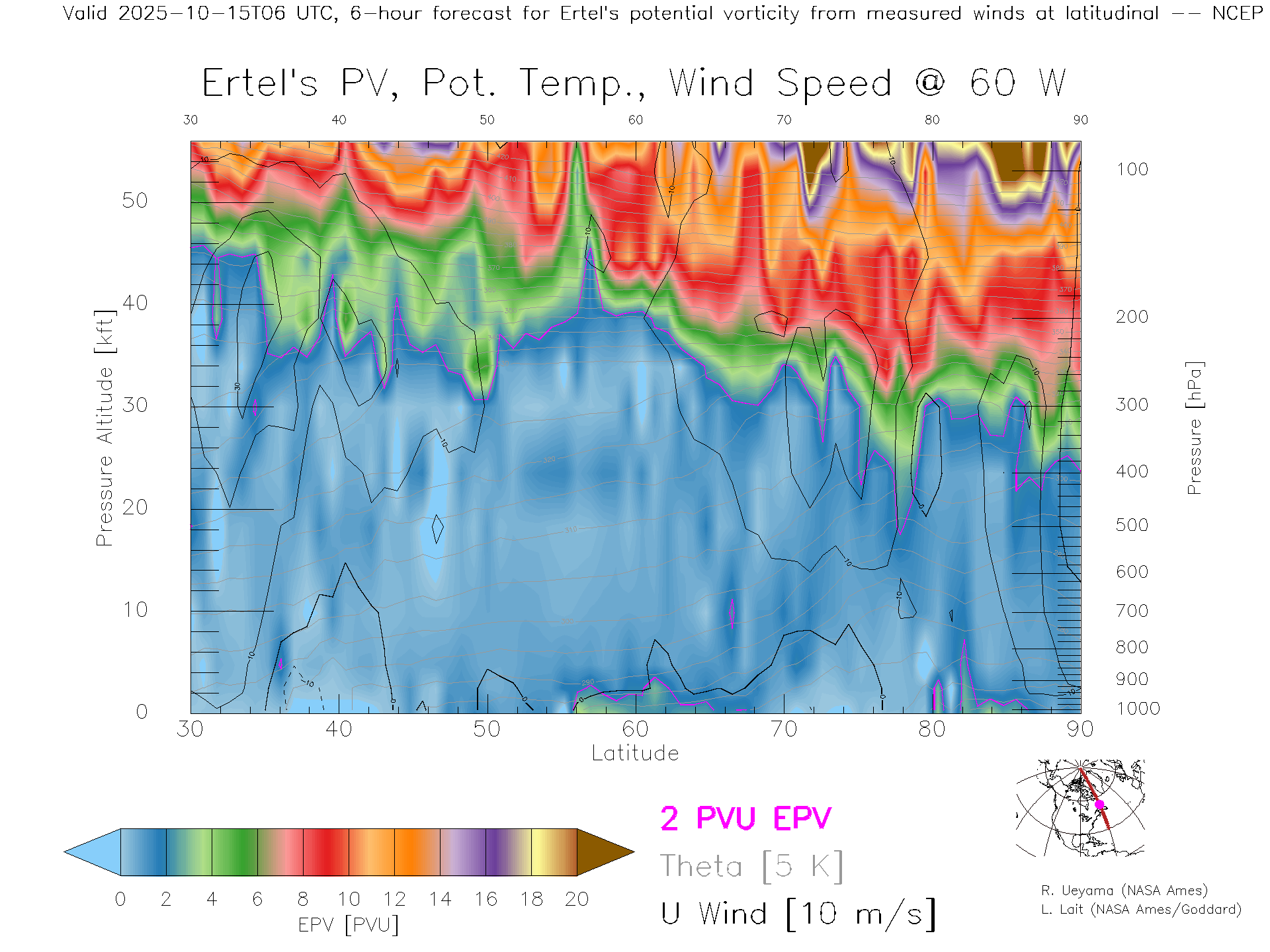 NCEP GFS Forecast PV X-Section (60 W)