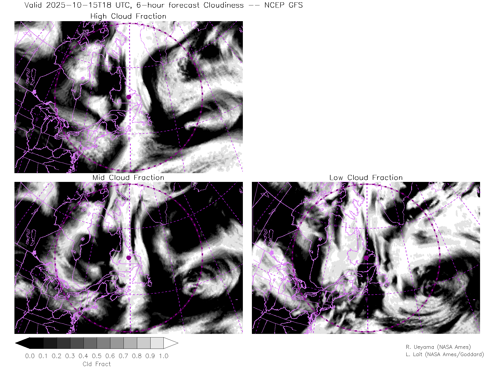 NCEP GFS Forecast Cloud Fraction (High, Mid, Low)