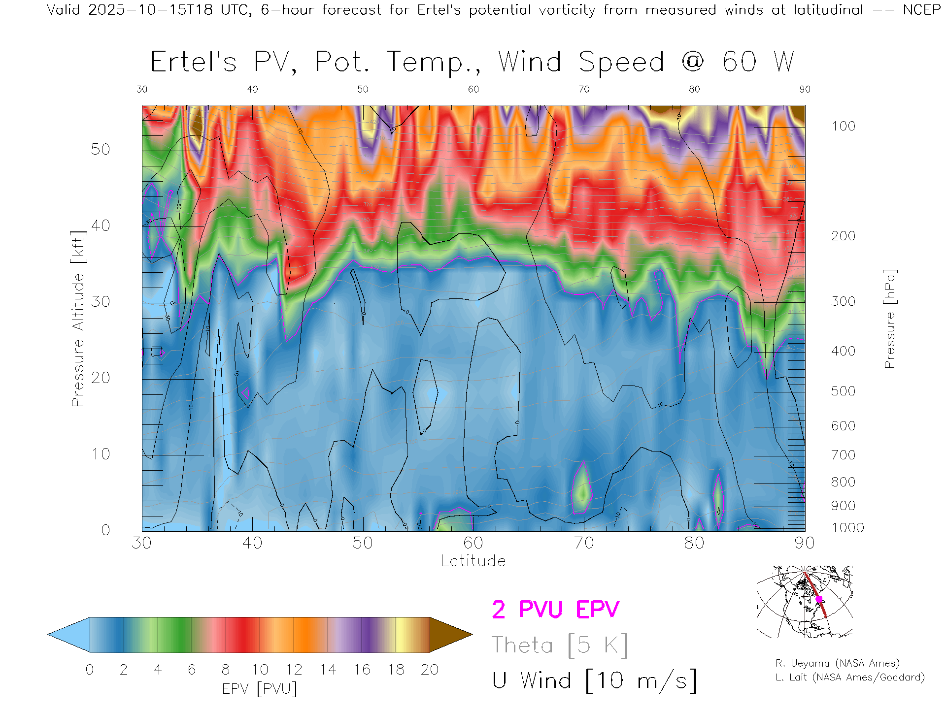 NCEP GFS Forecast PV X-Section (60 W)