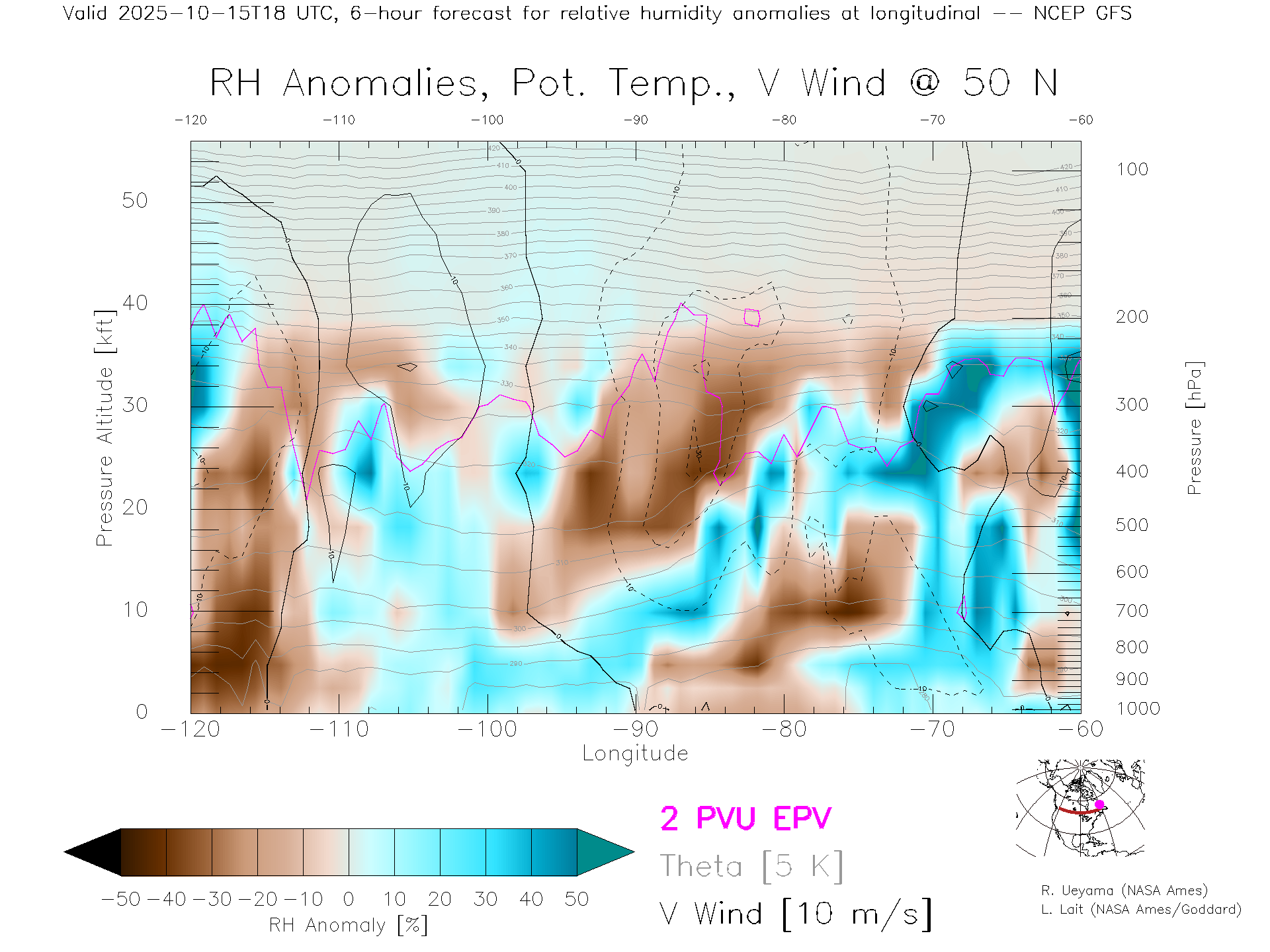 NCEP GFS Forecast Rel. Hum. X-Section (50 N)