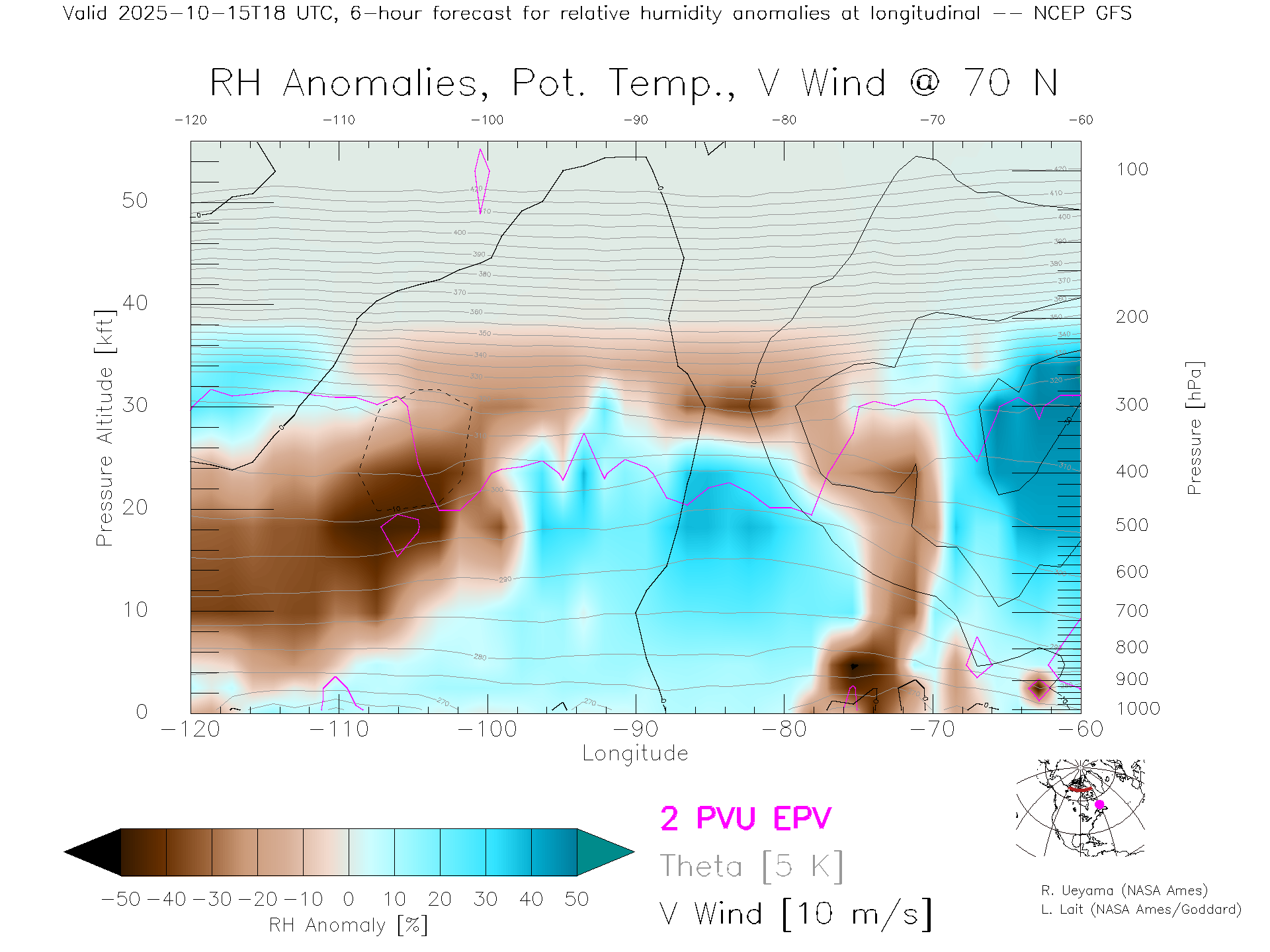 NCEP GFS Forecast Rel. Hum. X-Section (70 N)