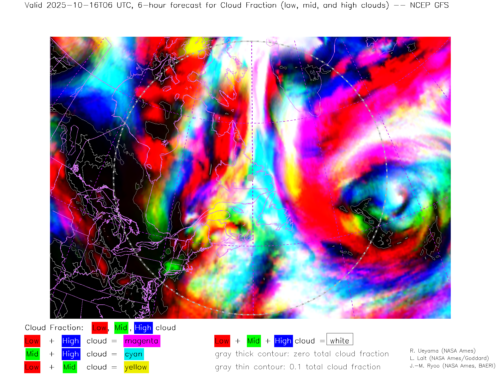 NCEP GFS Forecast Low-, Mid- and High-level Cloud Fraction