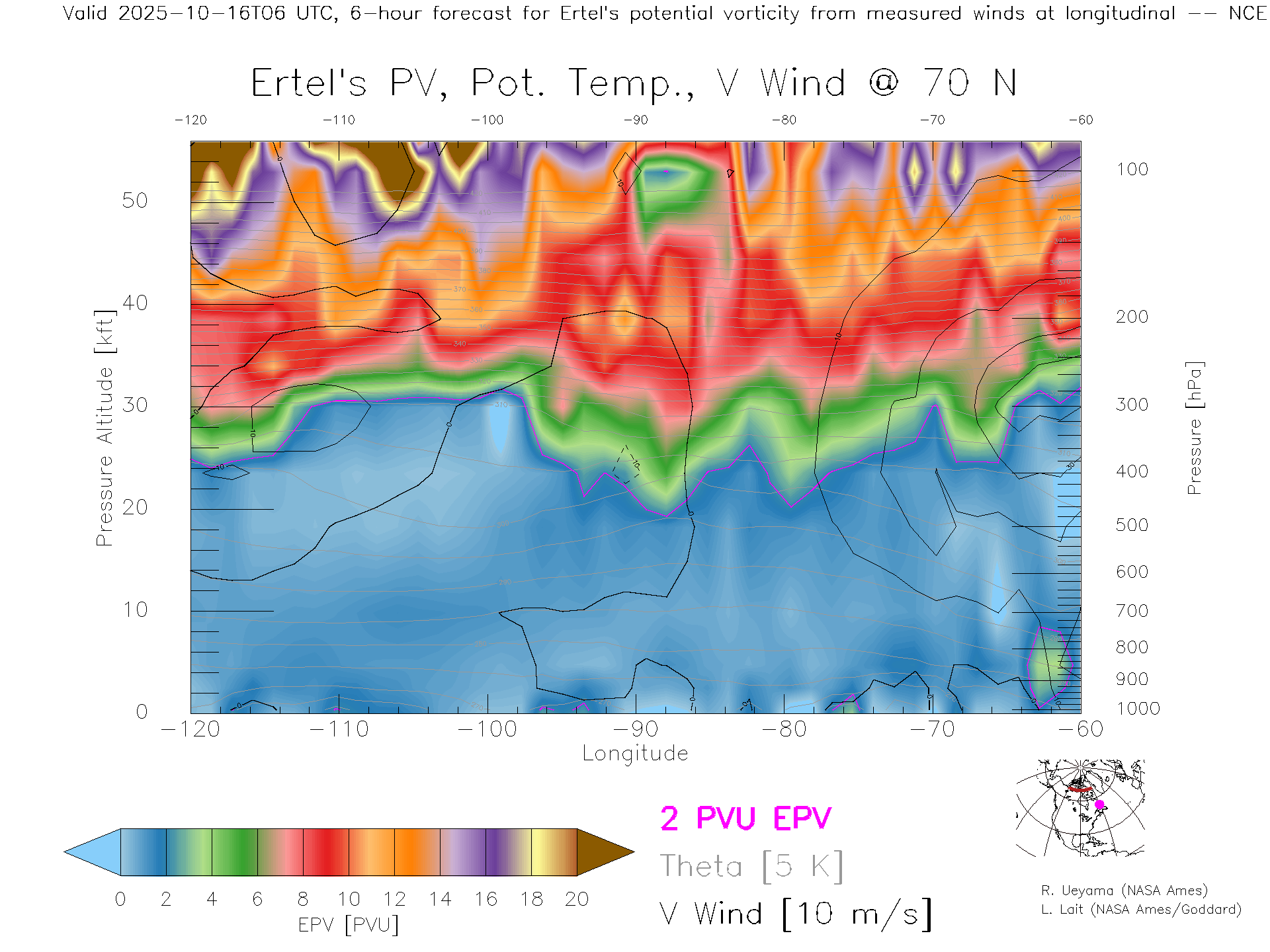 NCEP GFS Forecast PV X-Section (70 N)