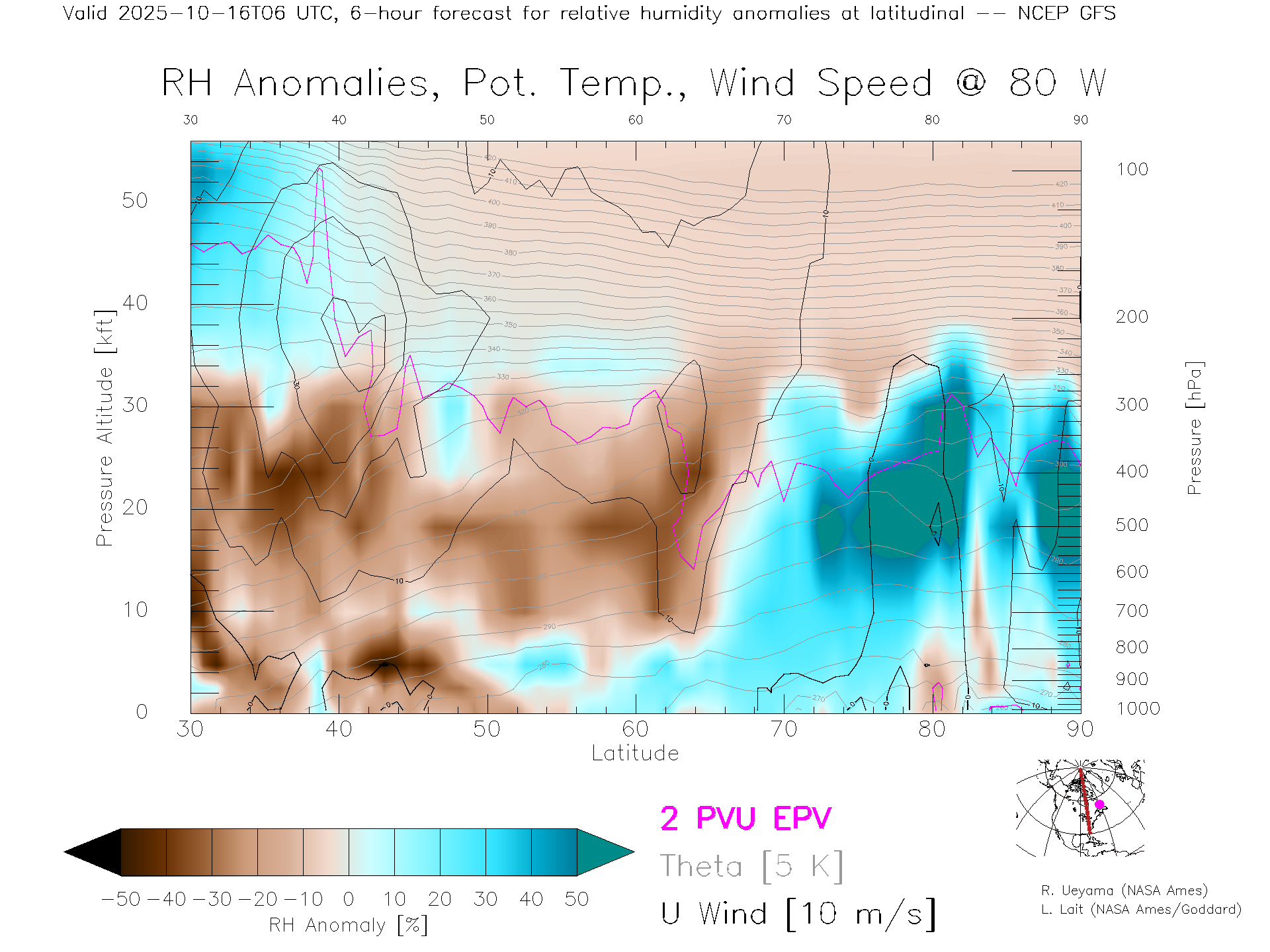 NCEP GFS Forecast Rel. Hum. X-Section (80 W)
