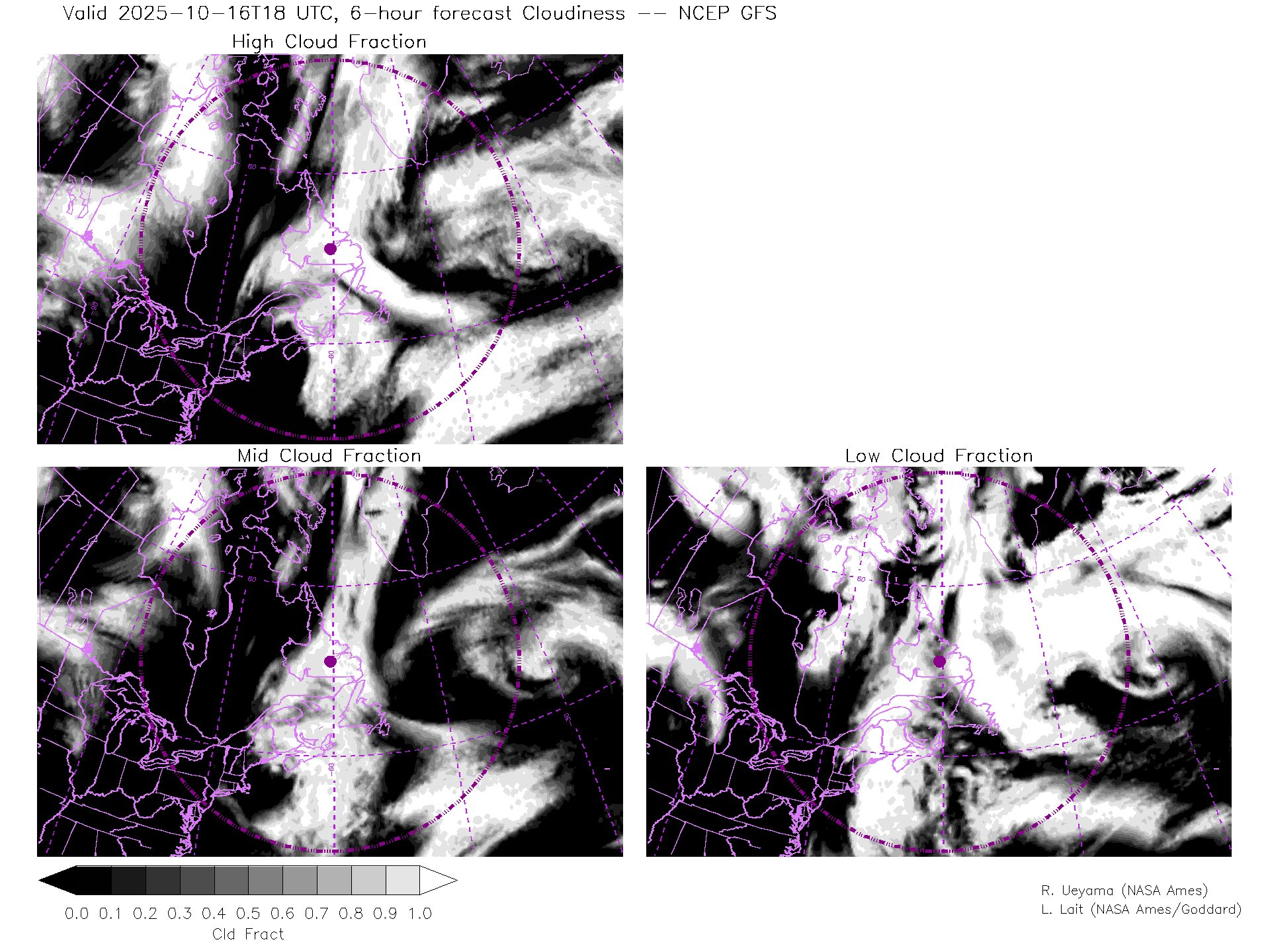NCEP GFS Forecast Cloud Fraction (High, Mid, Low)