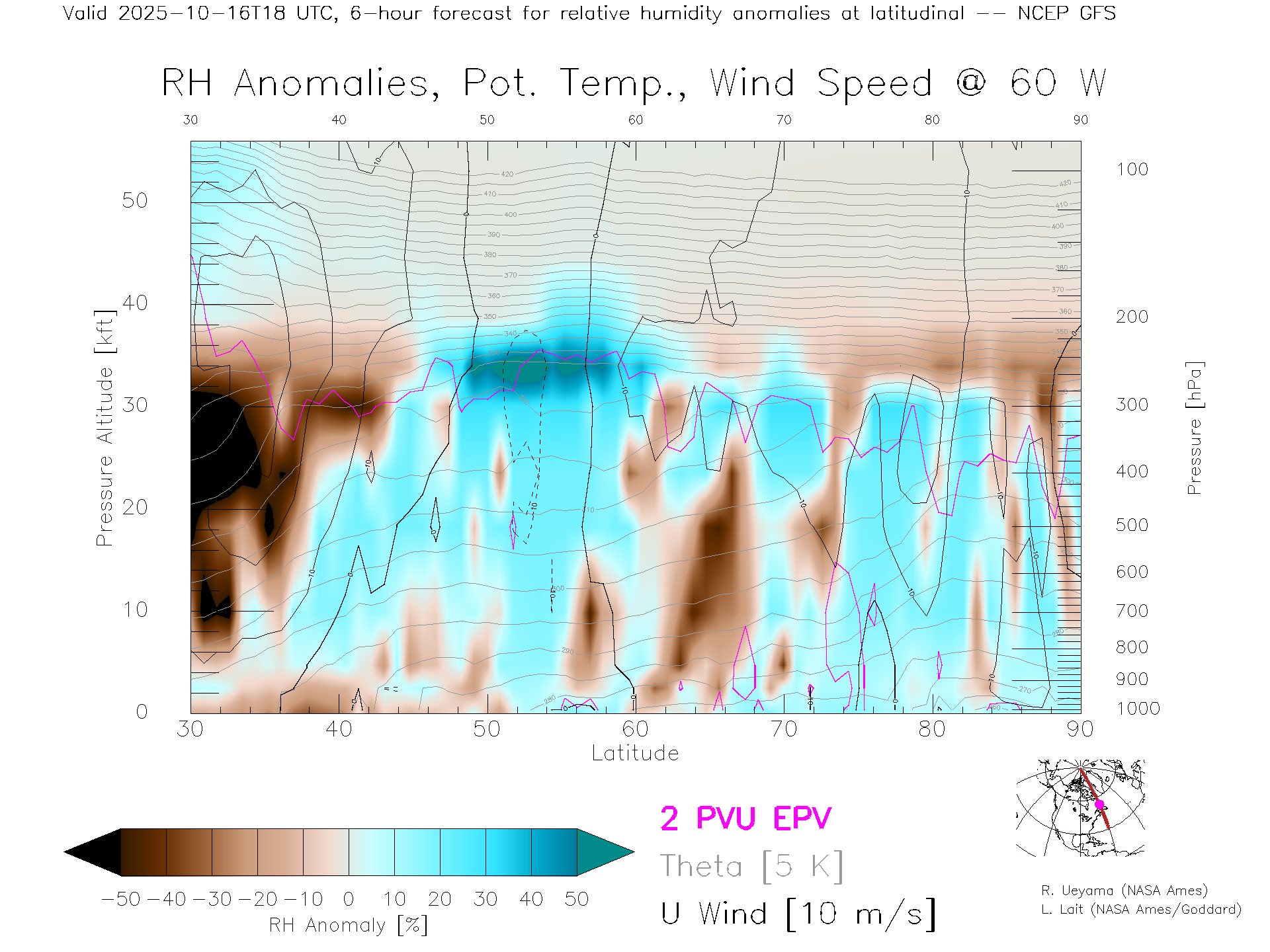 NCEP GFS Forecast Rel. Hum. X-Section (60 W)