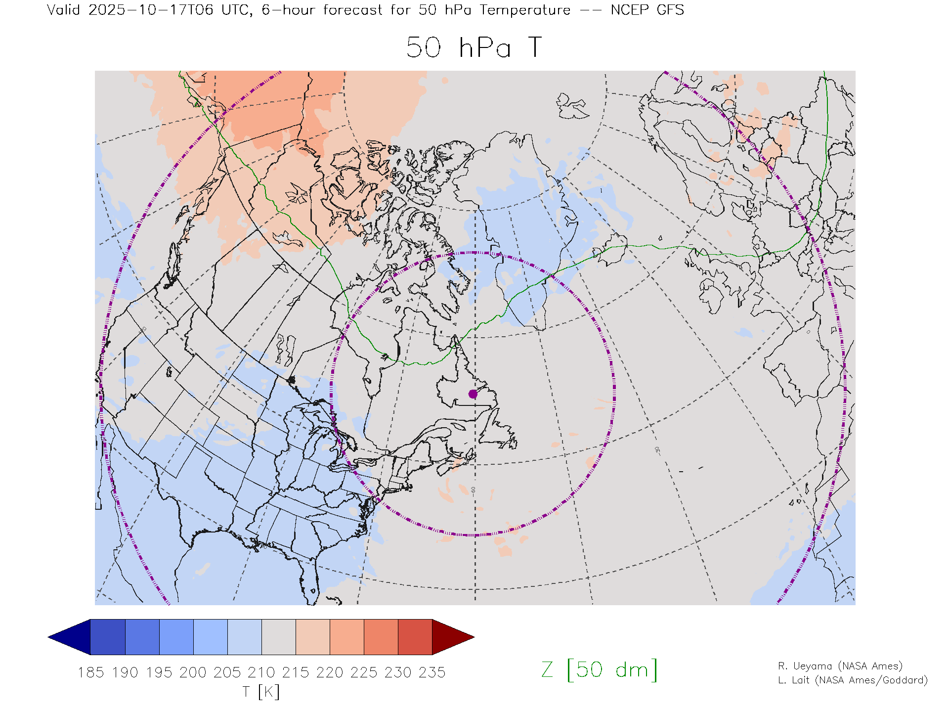 NCEP GFS Forecast 50 hPa Temp.