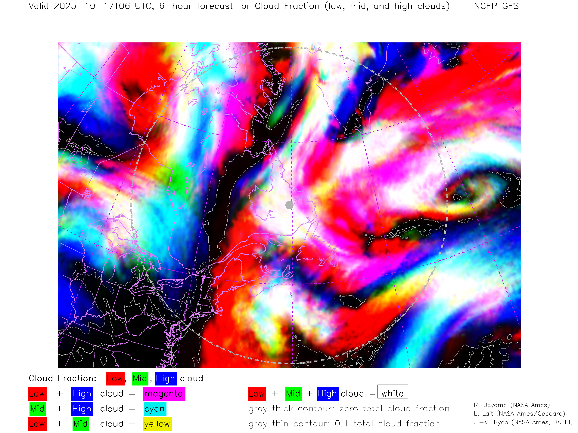 NCEP GFS Forecast Low-, Mid- and High-level Cloud Fraction
