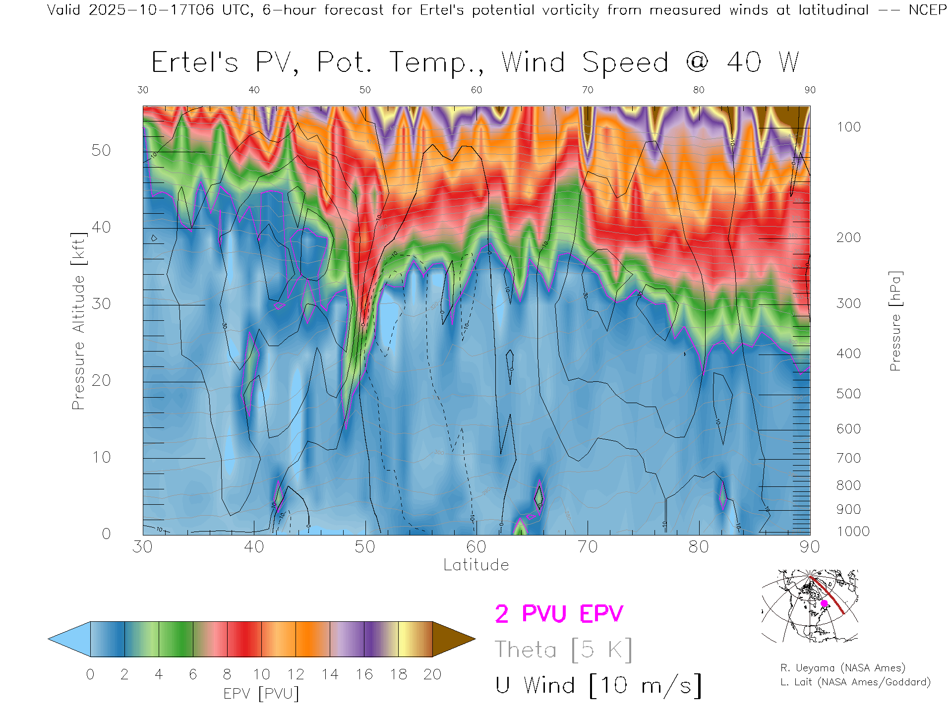 NCEP GFS Forecast PV X-Section (40 W)