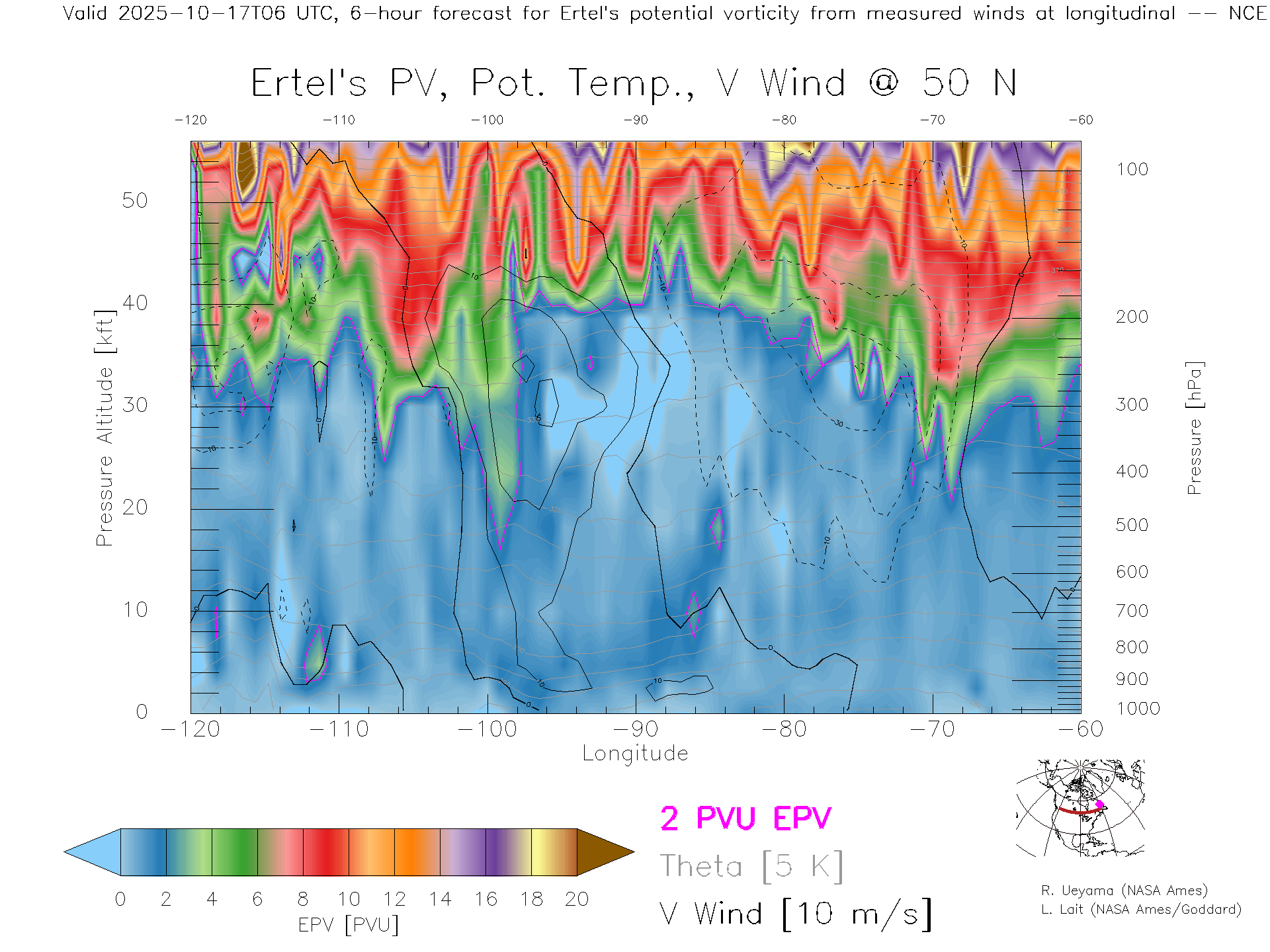 NCEP GFS Forecast PV X-Section (50 N)