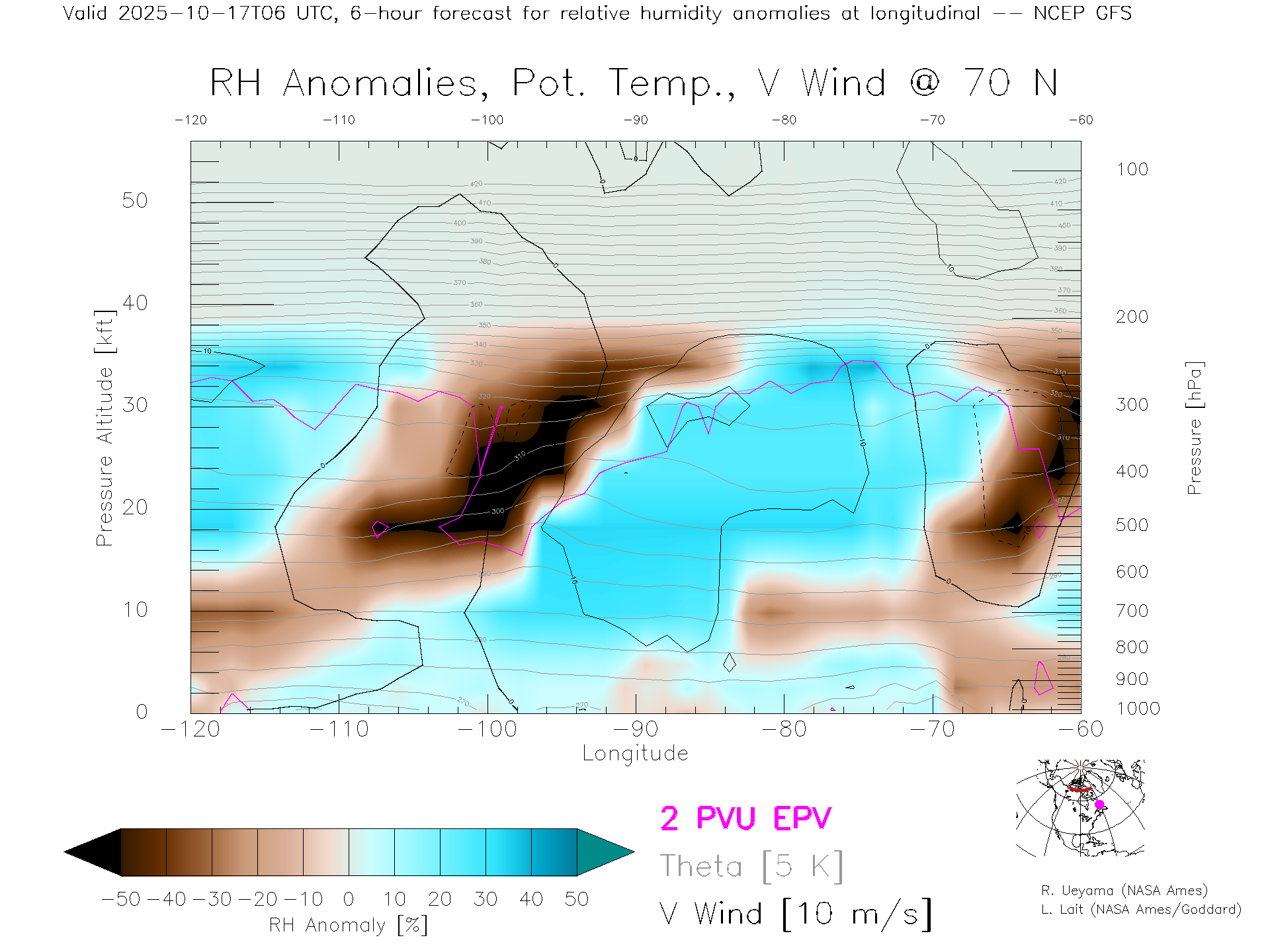 NCEP GFS Forecast Rel. Hum. X-Section (70 N)